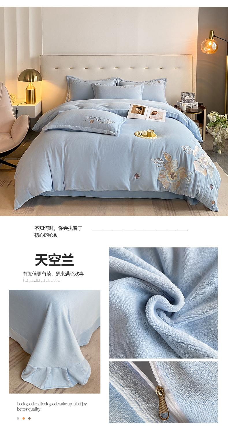 (总)爱家(原缔乐家纺) 2025新款牛奶雕花绒四件套-小雏菊,小雏菊-公主粉,小雏菊-奶昔白,小雏菊-天空兰