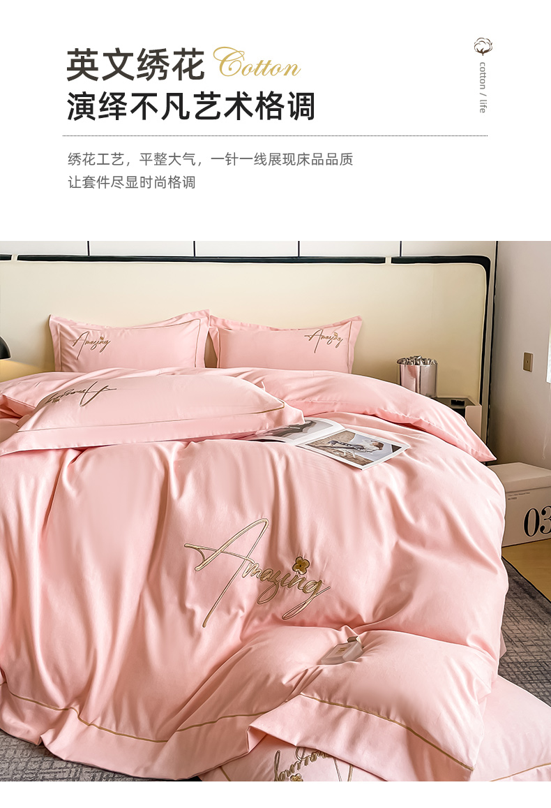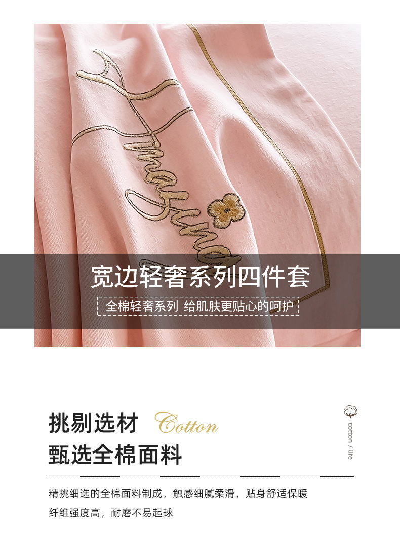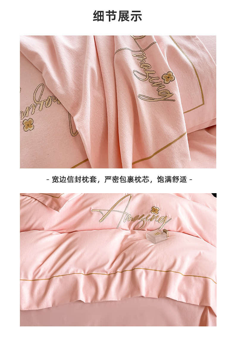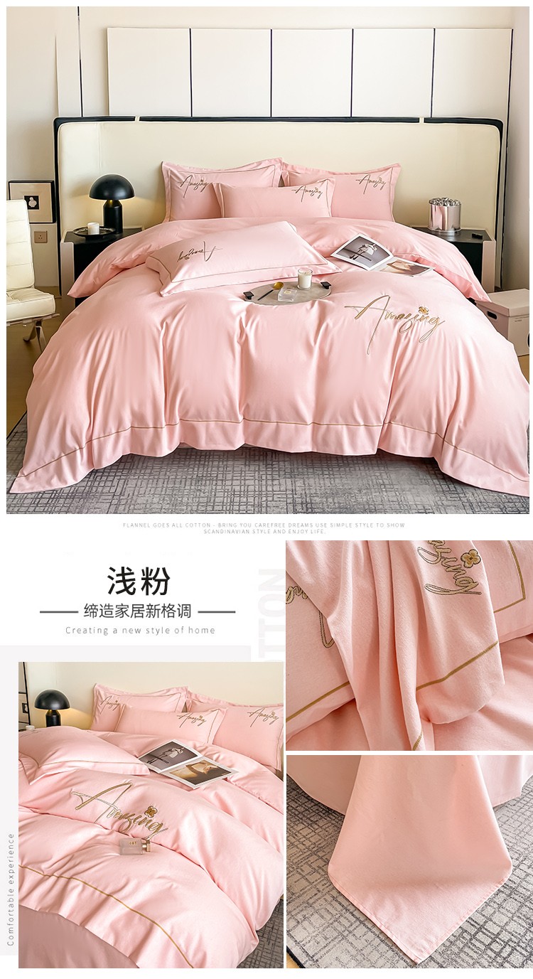 梧桐家居 2023新款全棉磨毛刺绣四件套 浅粉