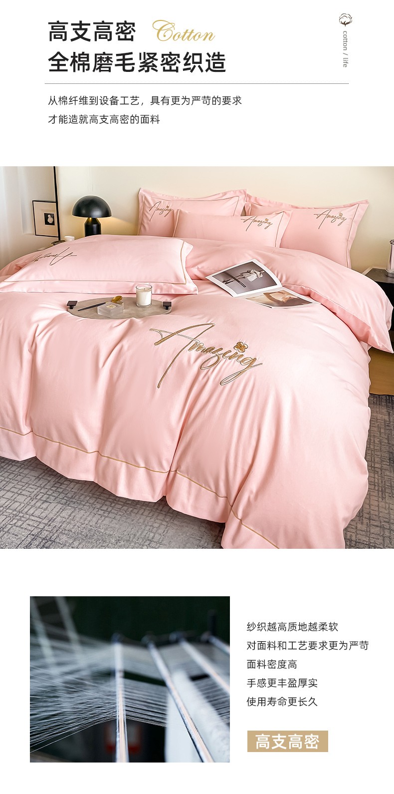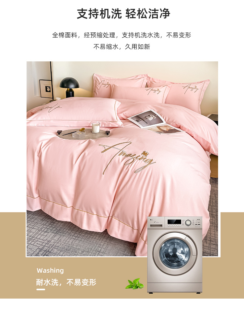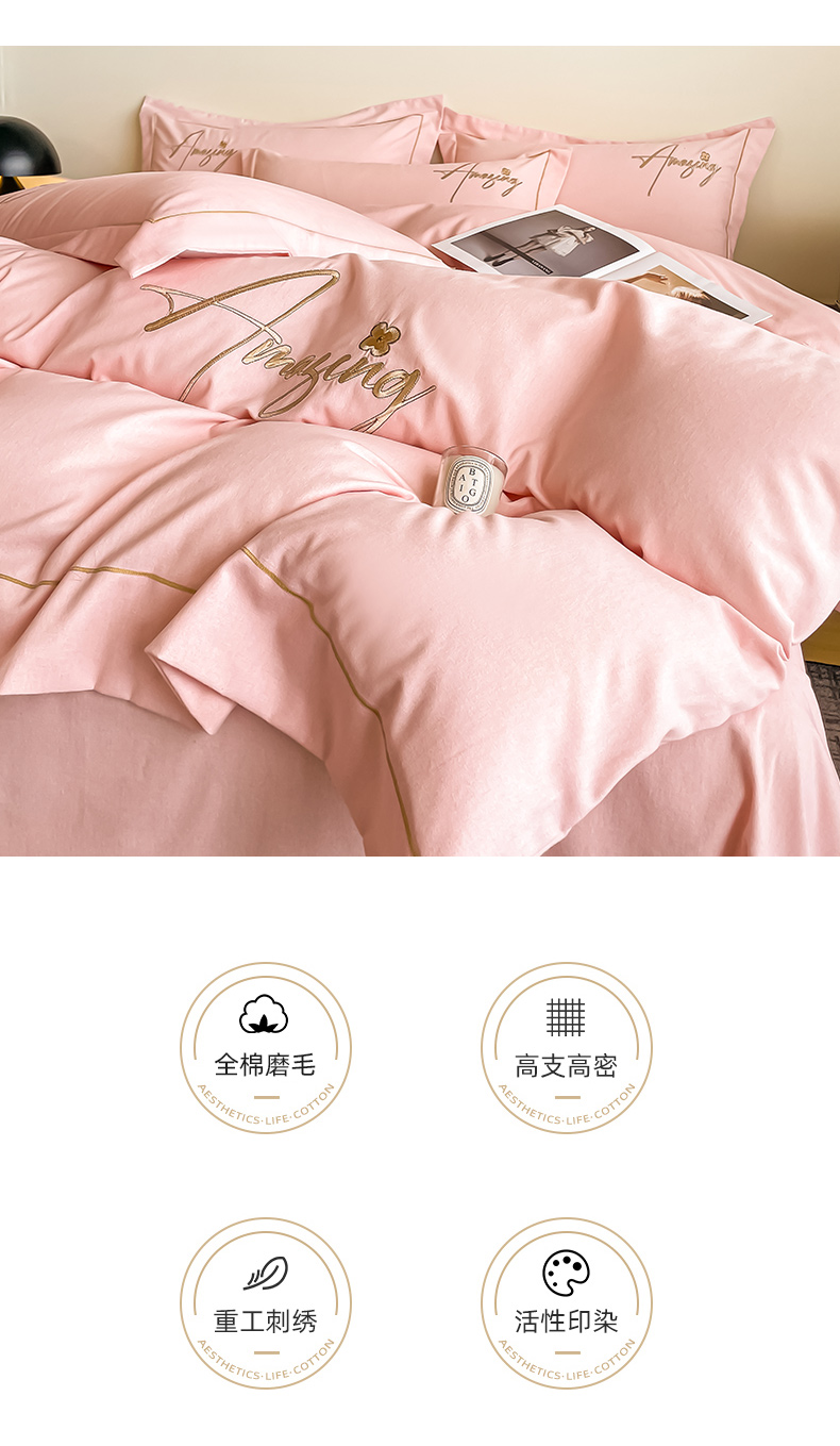 商品名称:梧桐家居 2023新款全棉磨毛刺绣四件套 浅粉