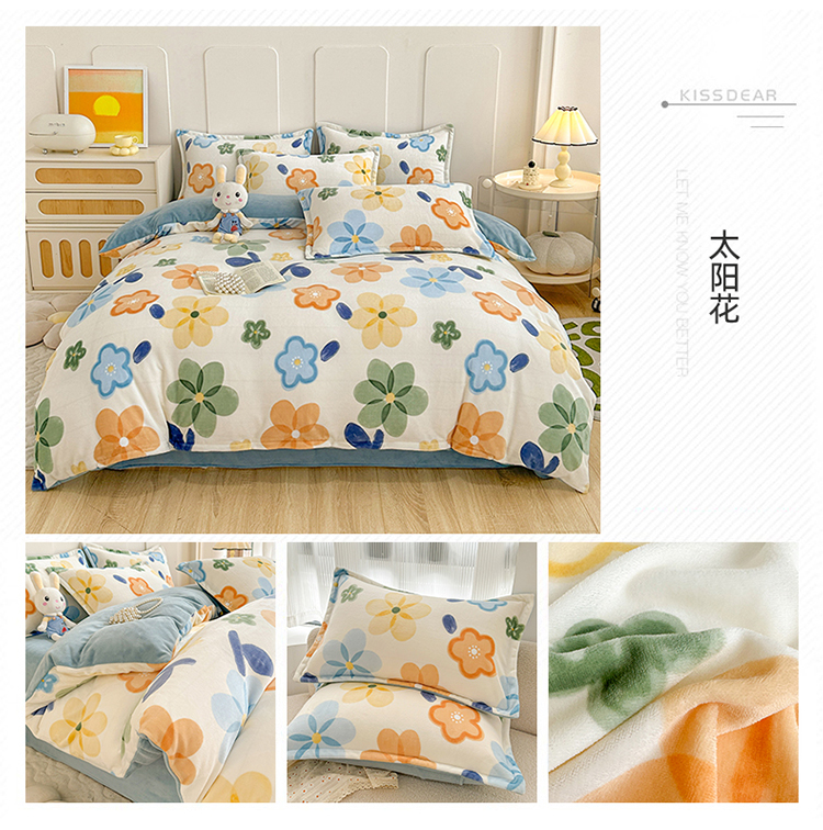 当前位置: 91家纺网 > 商品网购 > 床品套件 > 四件套 > 牛奶绒四件套 > 家贝爱 2023新款加厚牛奶绒四件套 太阳花