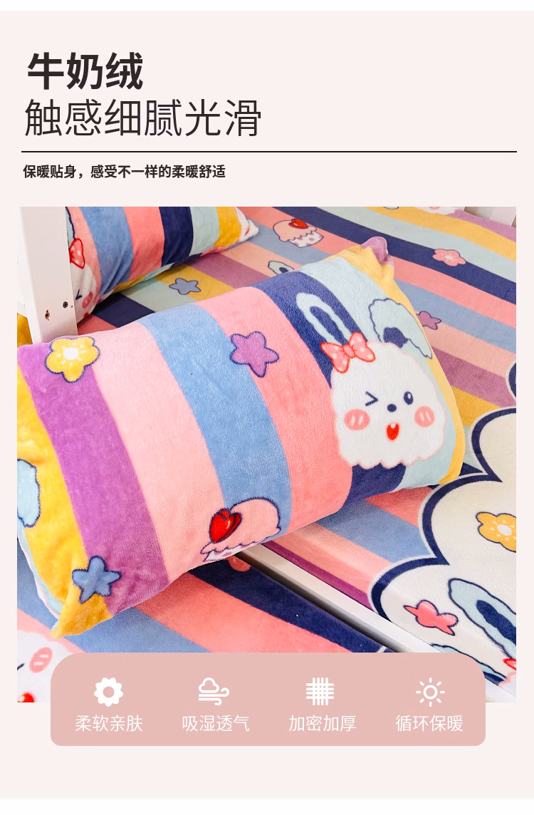 当前位置: 91家纺网 > 商品网购 > 床上用品 > 床笠 > 小虾米 2023新款上下床加厚牛奶绒床笠 彩虹兔
