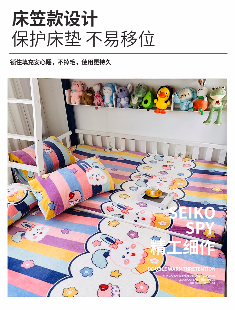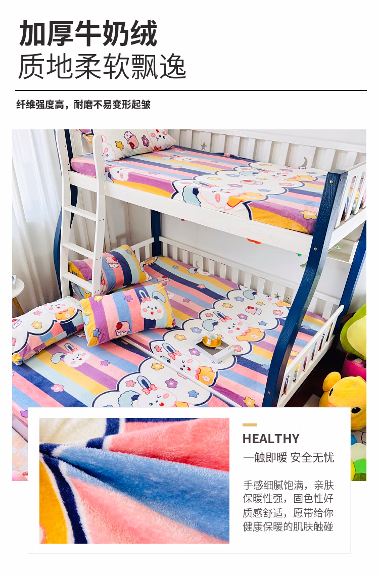 • 91家纺网 家纺一手货源 找家纺 小虾米 2023新款上下床加厚牛奶绒床笠 彩虹兔
