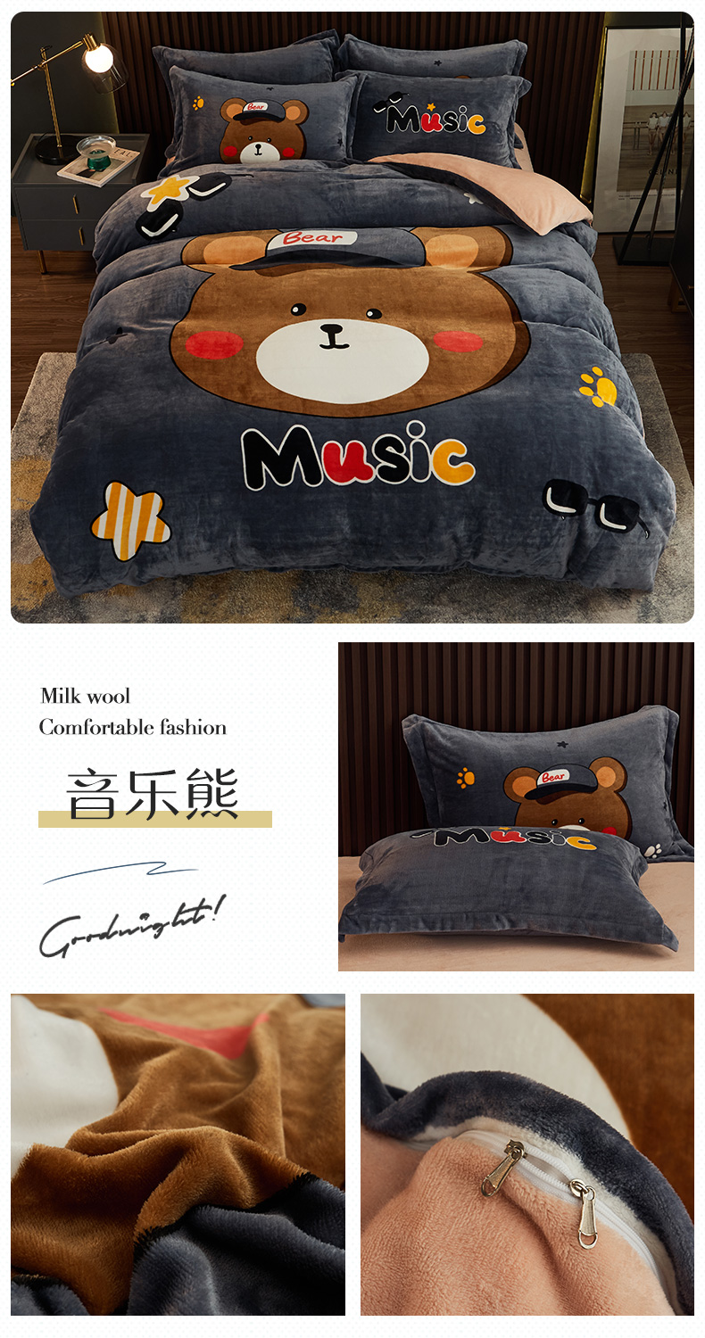 当前位置: 91家纺网 > 商品网购 > 床品套件 > 四件套 > 牛奶绒四件套 > 宅部落 2023新款大版卡通牛奶绒四件套法莱绒 8.音乐熊