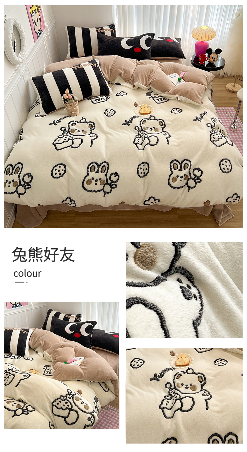 当前位置: 91家纺网 > 商品网购 > 床品套件 > 四件套 > 牛奶绒四件套 > 顾里家纺 2023新款ins韩风∙立体牛奶雪花绒系列四件套 兔熊好友