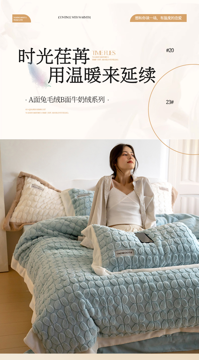 (总)名品优仓 2023新款A面兔毛绒B面牛奶绒系列四件套-布兰妮