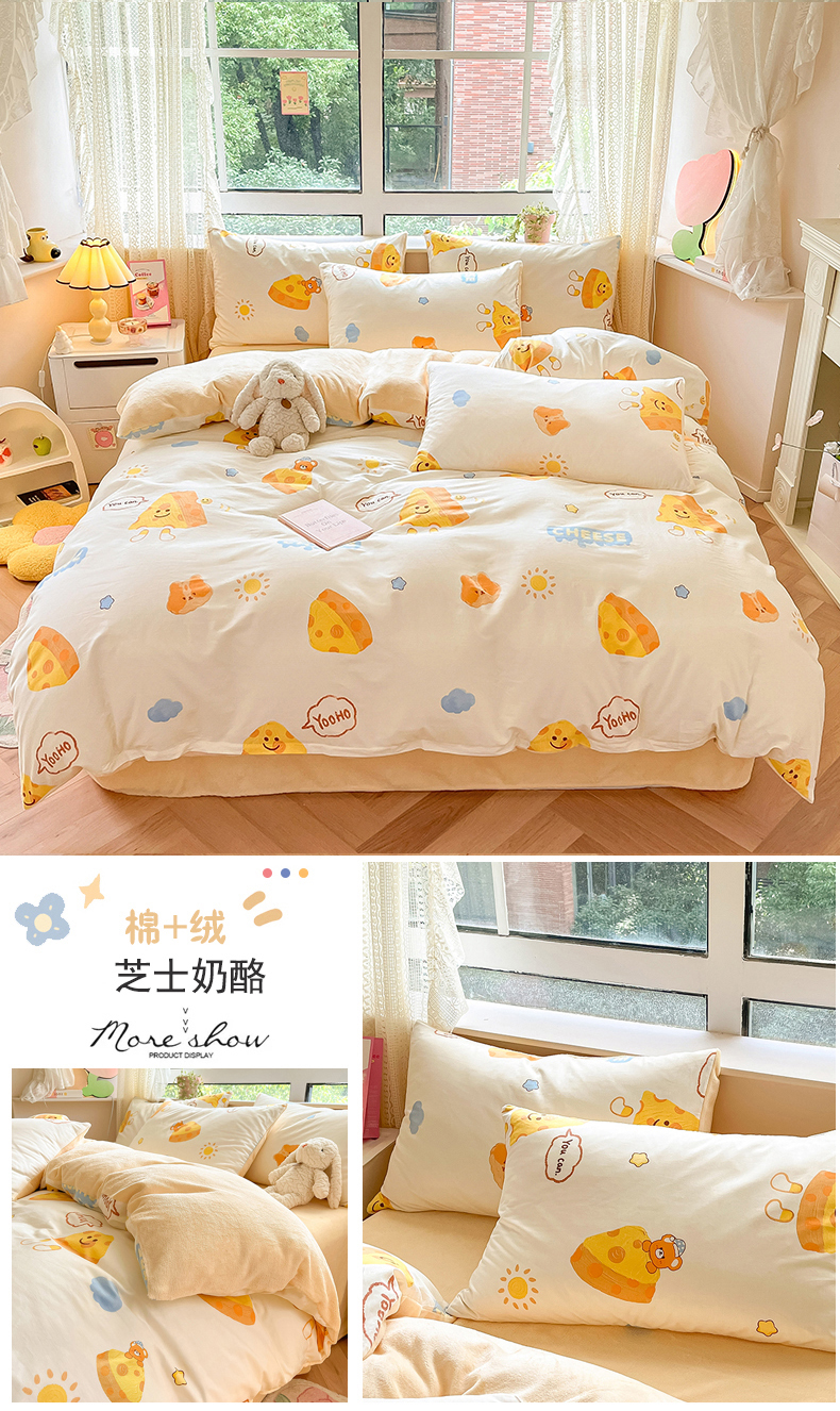 商品名称:麦伦家居 2023新款秋冬多功能床品全棉加牛奶绒单被套 芝士奶酪