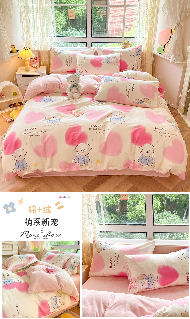 (总)麦伦家居 2025秋冬新品多功能床品全棉+豆豆绒四件套卡通小清新系列,迪迪龙,好友鸭,花韵抹茶,浣花,杰克熊,乐园小马,清茶小熊,童趣米,星星小象蓝,云朵腊肠狗,粉色玫瑰,可爱小兔-米黄,木马小熊蓝,拾趣爱宠,星星木马