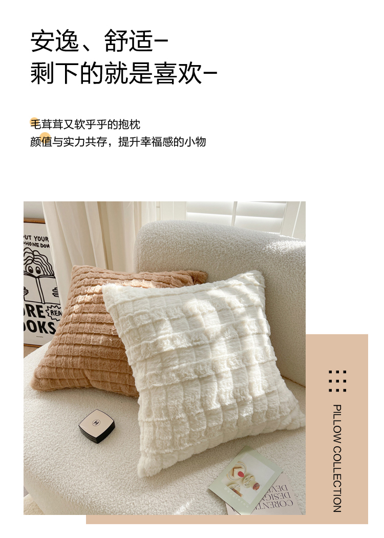 (总)美茉家居 2025新款兔毛绒炫彩睫毛云朵抱枕,杏色,白色