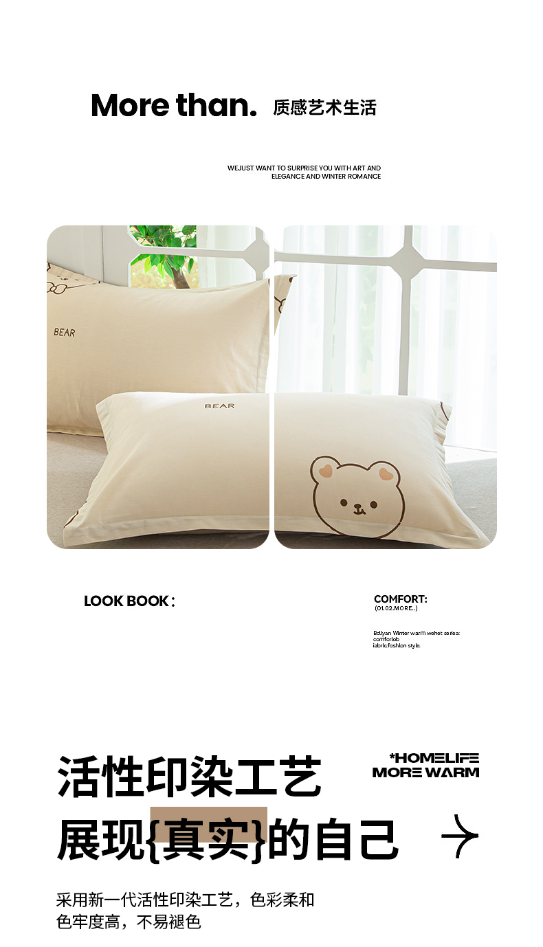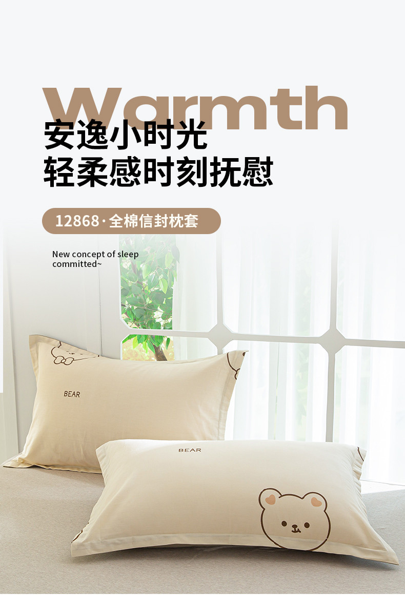 • 91家纺网 家纺一手货源 找家纺 集布 2023新款12868全棉喷气印花信封枕套 绅士熊
