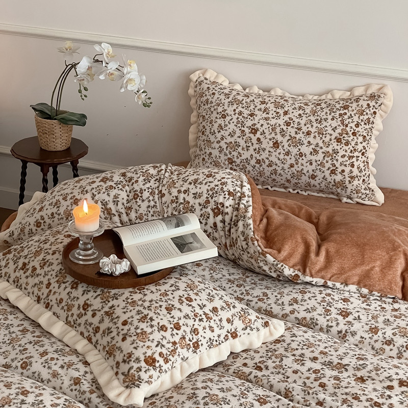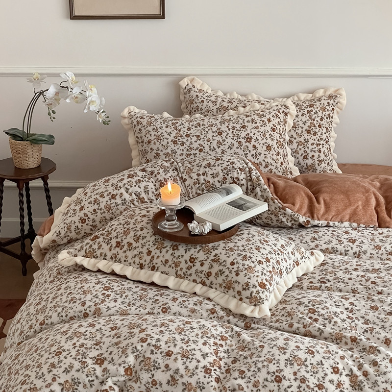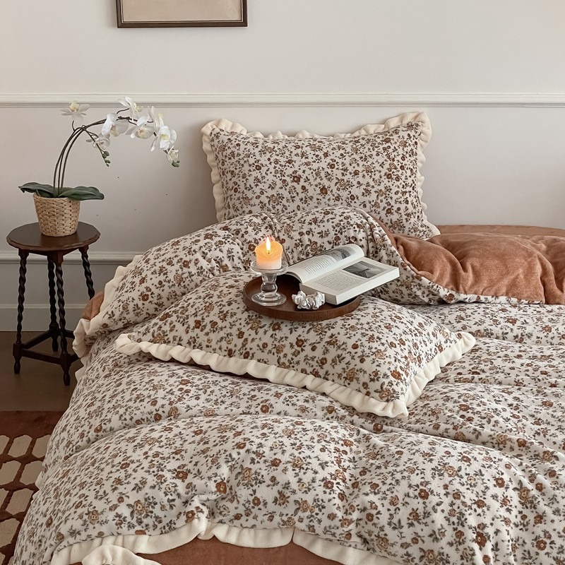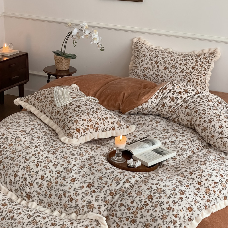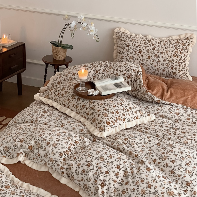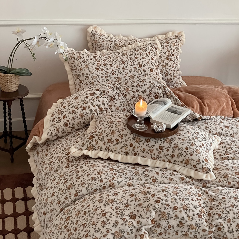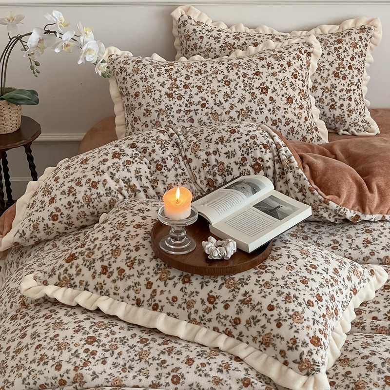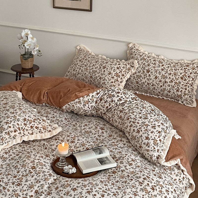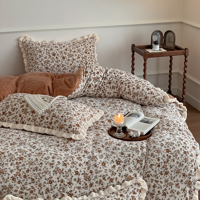 潘朵拉 2023新款美拉德风牛奶绒花边款四件套 欢颜