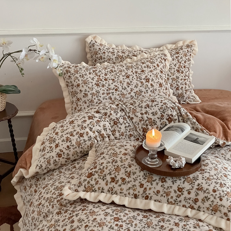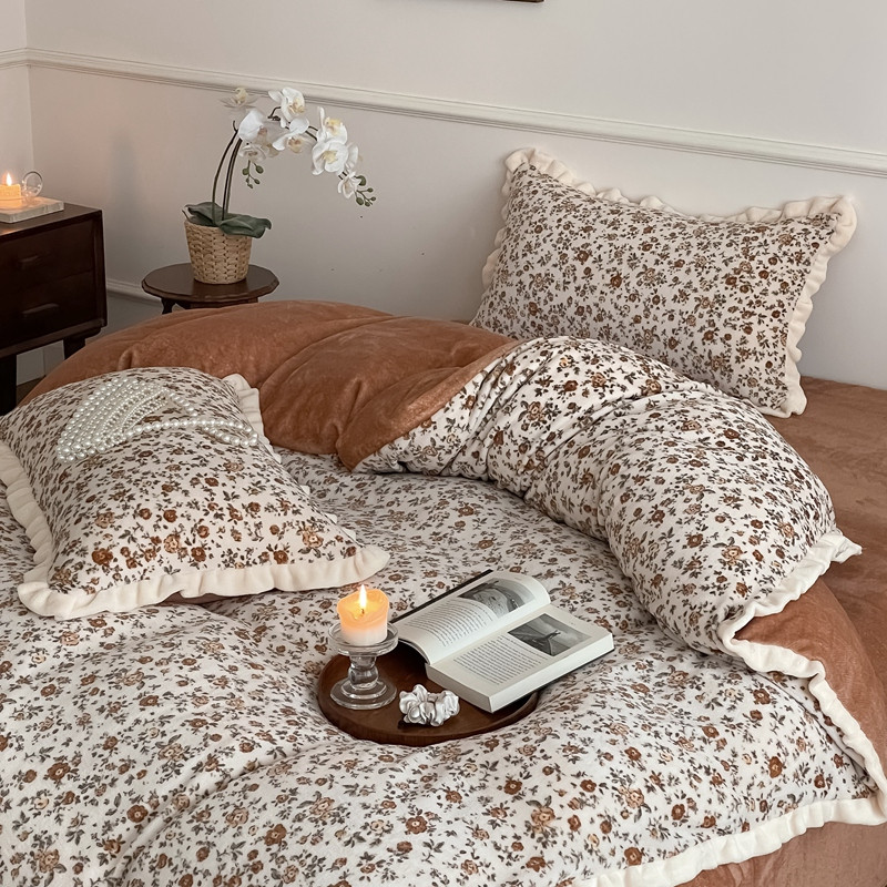 商品名称:潘朵拉 2023新款美拉德风牛奶绒花边款四件套 欢颜
