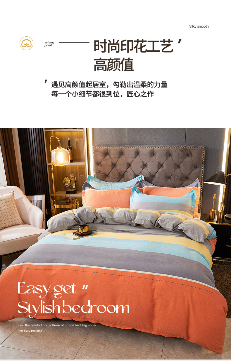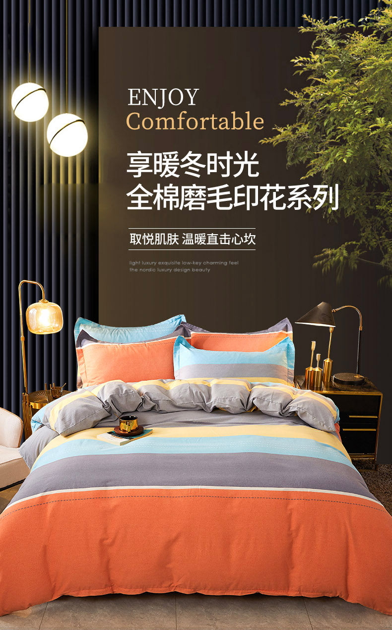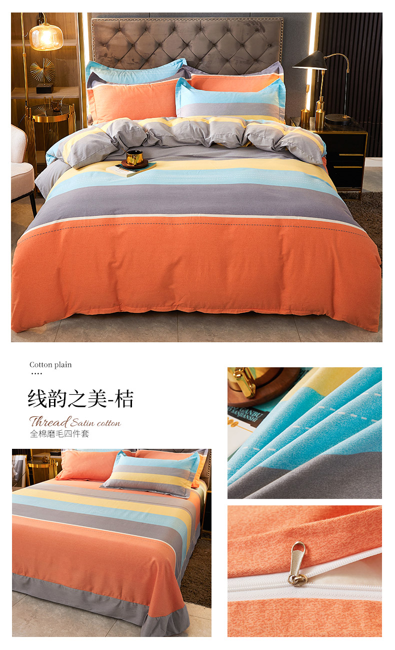 当前位置: 91家纺网 > 商品网购 > 床品套件 > 四件套 > 普通磨毛四件套 > 伊而梦 2023新款全棉磨毛印花四件套系列四件套 线韵之美-桔
