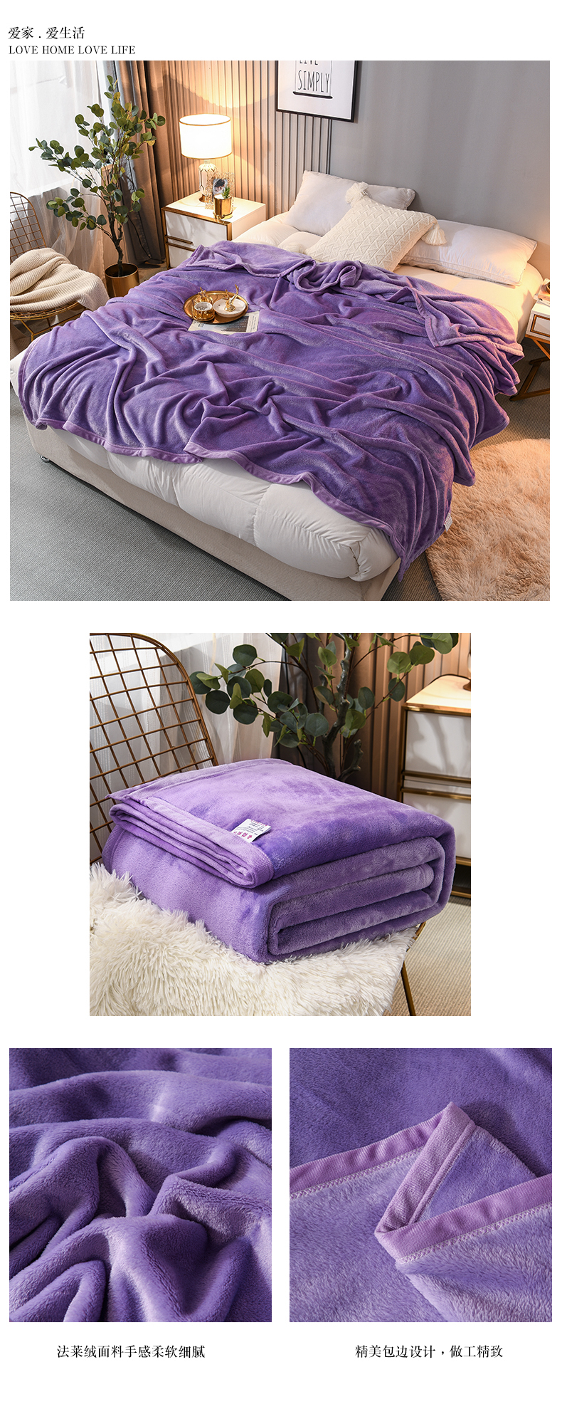 仟人梦 2024新款纯色法莱绒毛毯多功能毛毯 浅紫色