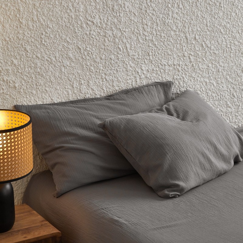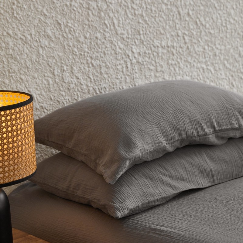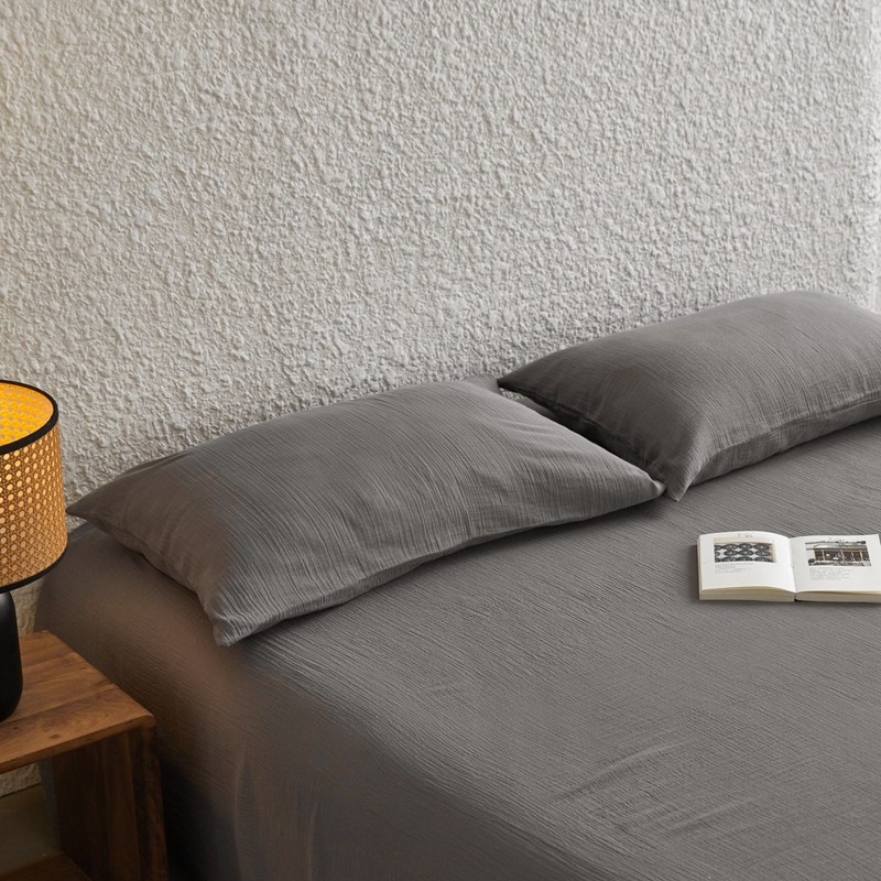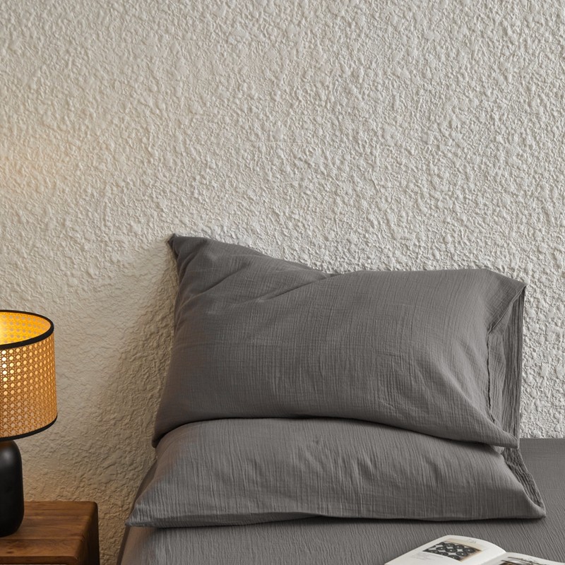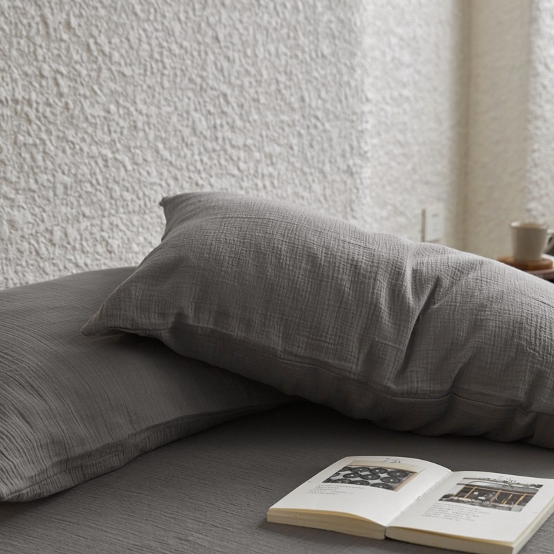 安莱生活2024新款绉纱美拉德色纯色单品枕套 水泥