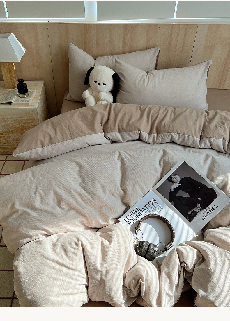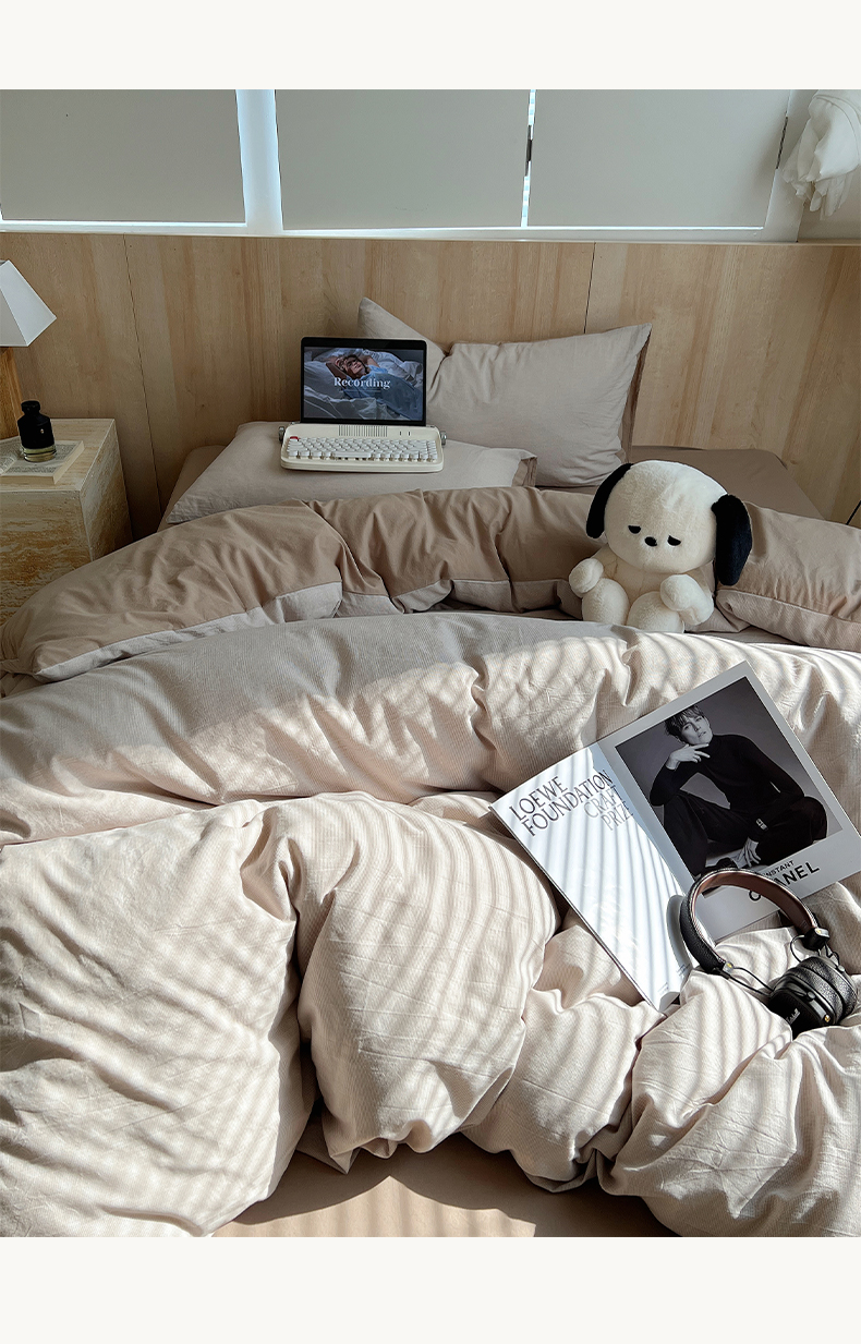 雅居纺家纺 2024新款色织水洗棉四件套 千鸟格卡其