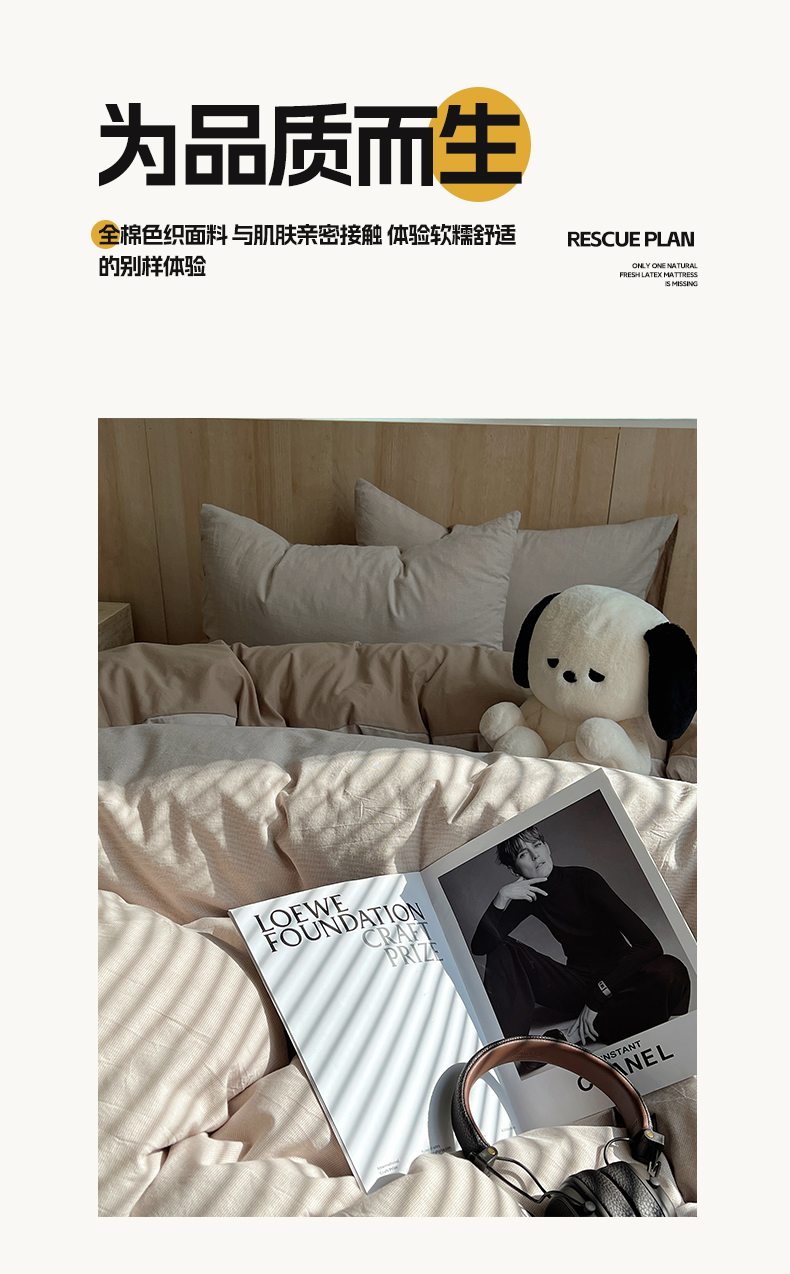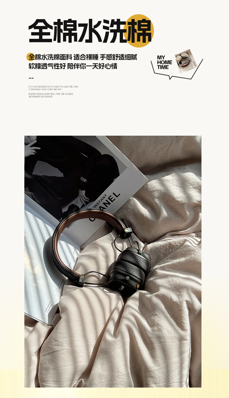 (总)雅居纺家纺 2022新款全棉华夫格普通款四件套,焦糖,米驼,奶油白,柔粉,深灰,雾蓝,月灰