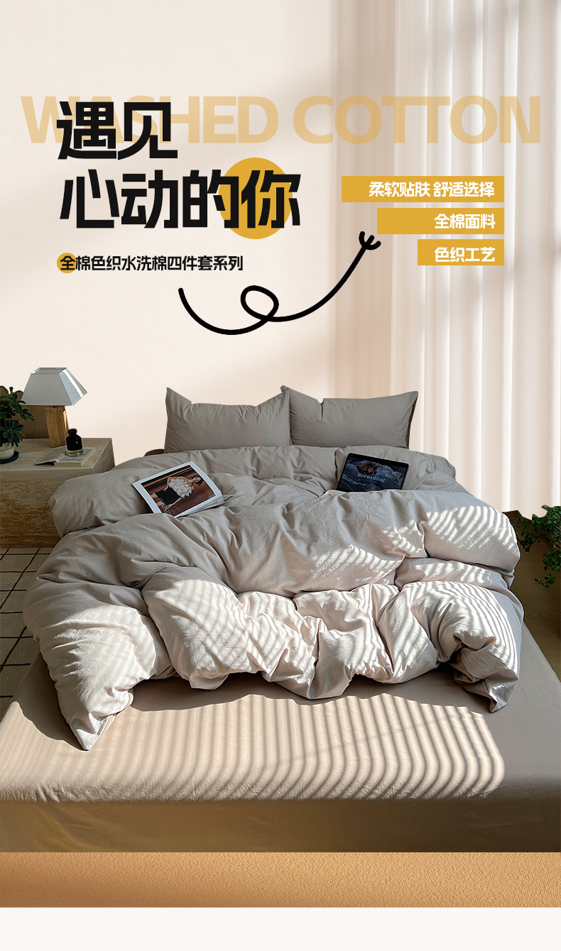 (总)雅居纺家纺 2022新款全棉水洗棉四件套,Ins粉蓝,ins浅蓝,白+墨子绿,白+绅士红,低调灰,低调灰绅士灰,豆绿+米黄,复古绿卡其,果绿绅士黄,焦糖咖啡,咖啡+卡其,米黄,米黄+明黄,米黄咖啡,米黄水绿,墨子绿,墨子绿卡其,墨子绿绅士黄,牛仔蓝低调灰,浅蓝深灰,清雅蓝绅士灰,绅士红卡其,绅士黄卡其,绅士灰,新蓝米黄