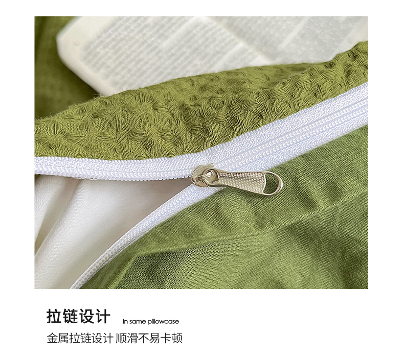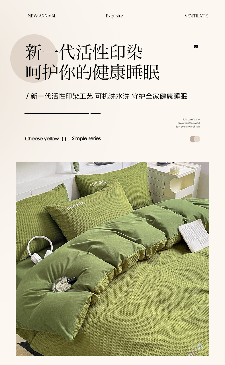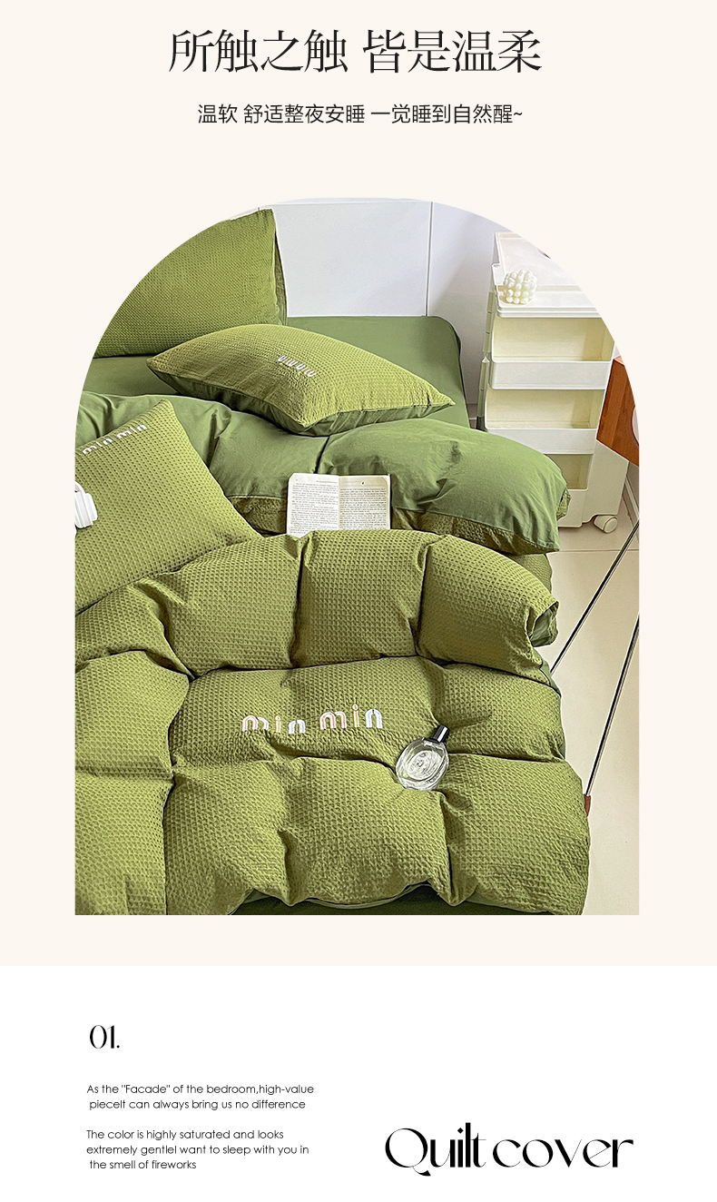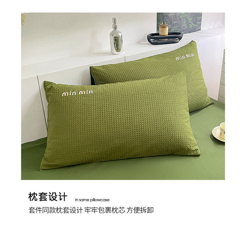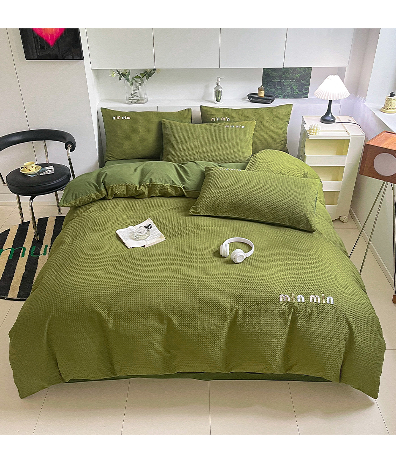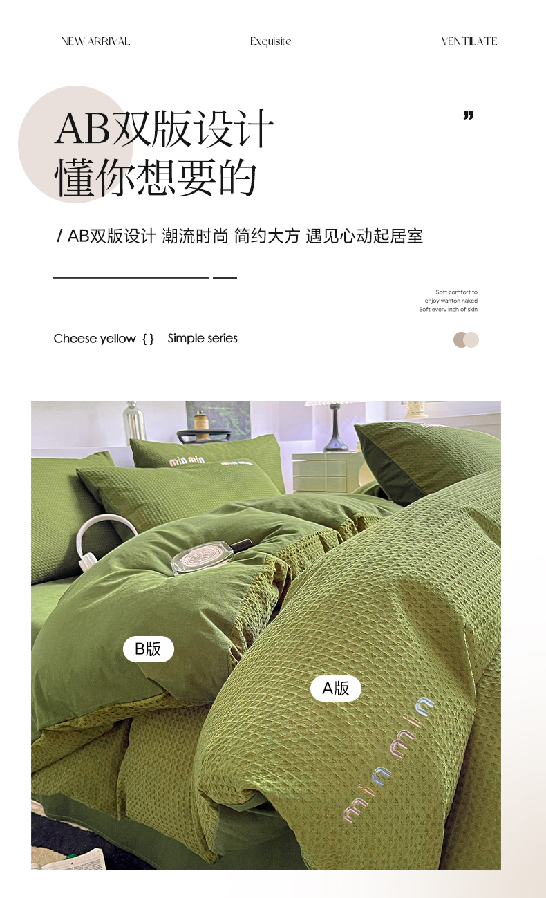 商品名称:雅居纺家纺 2024新款全棉华夫格绣花四件套 Min-深绿
