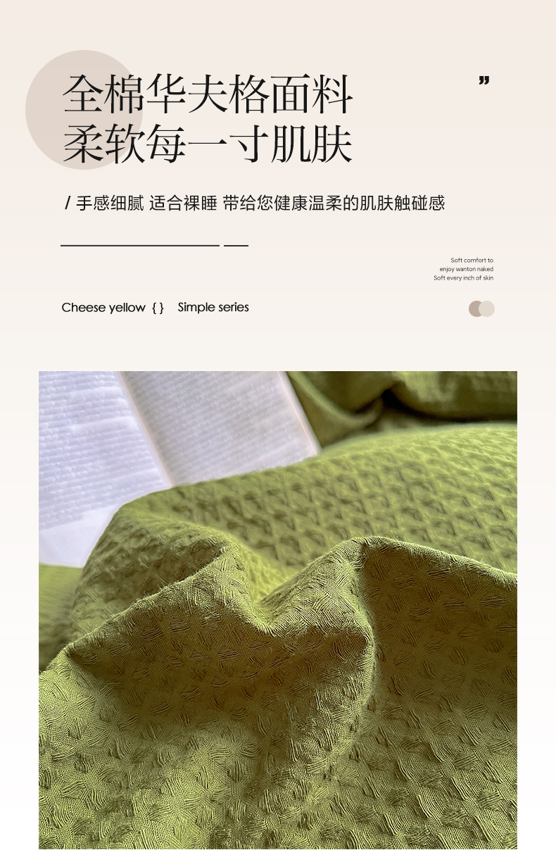 (总)雅居纺家纺 2022新款全棉华夫格普通款四件套,焦糖,米驼,奶油白,柔粉,深灰,雾蓝,月灰