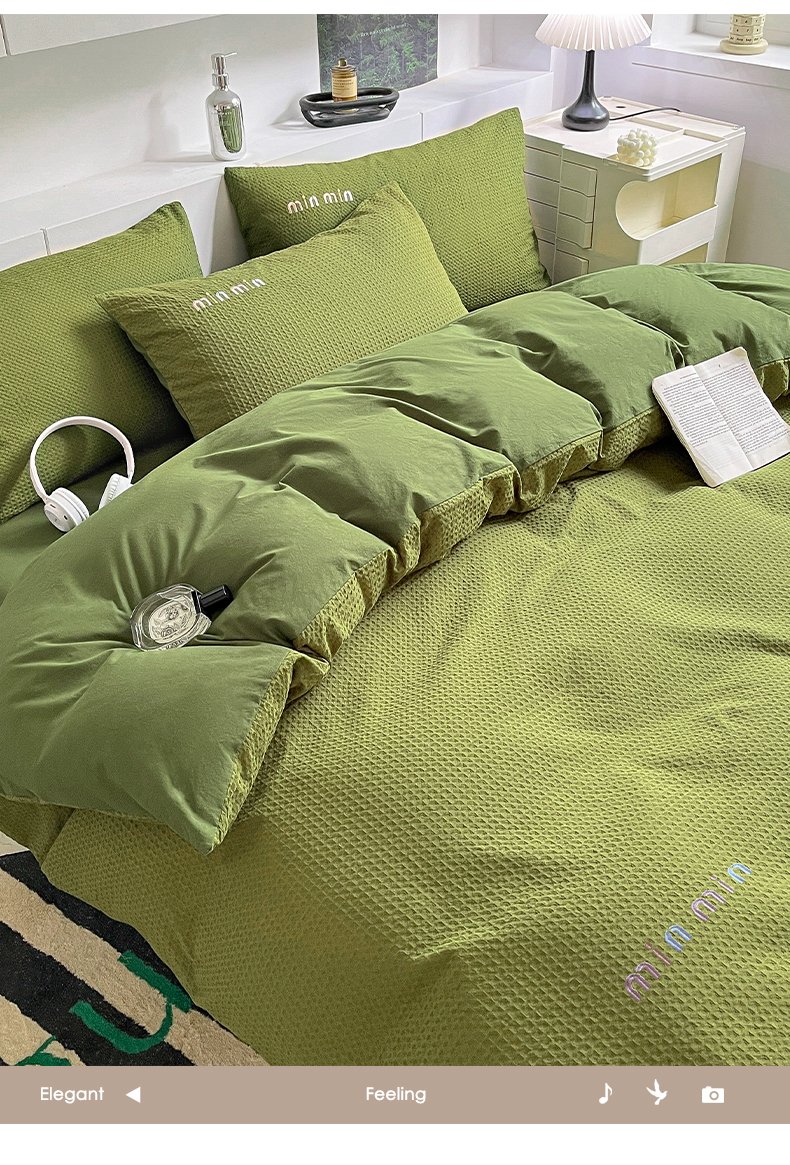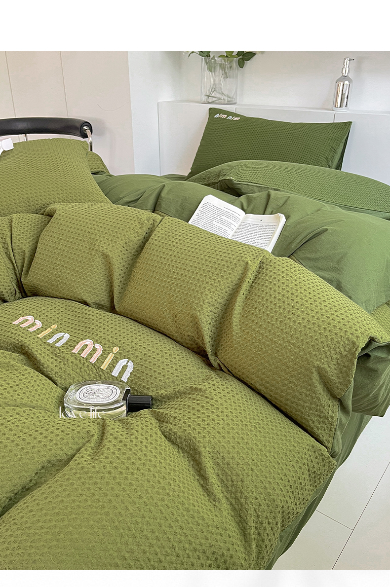 雅居纺家纺 2024新款全棉华夫格绣花四件套 Min-深绿