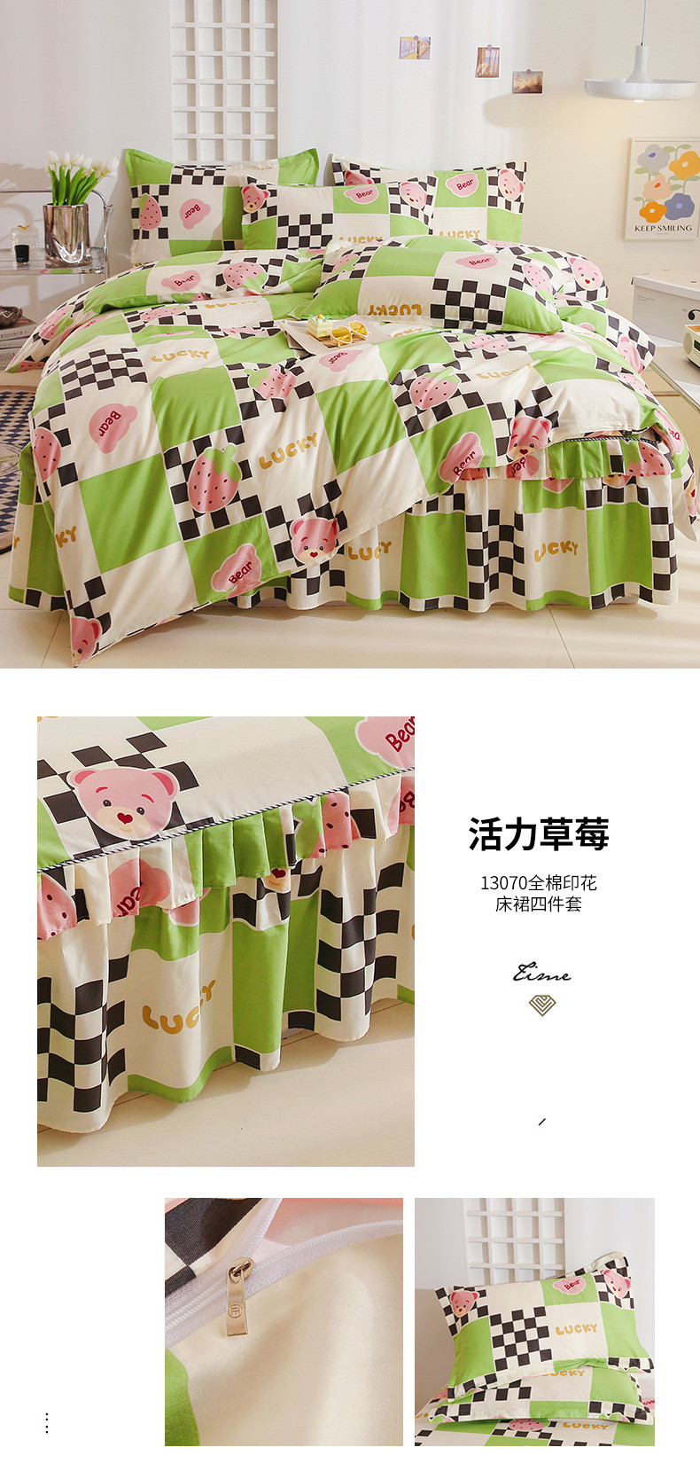 (总)名优家纺 2025新款A类13070全棉纯棉韩版印花床裙,北野,布里克,乘风宇宙,橙心如意,红星小熊,季夏,空谷幽兰,恐龙小霸王,漫春,梦柔-兰,酸甜樱桃,熙悦-黄,小欣喜