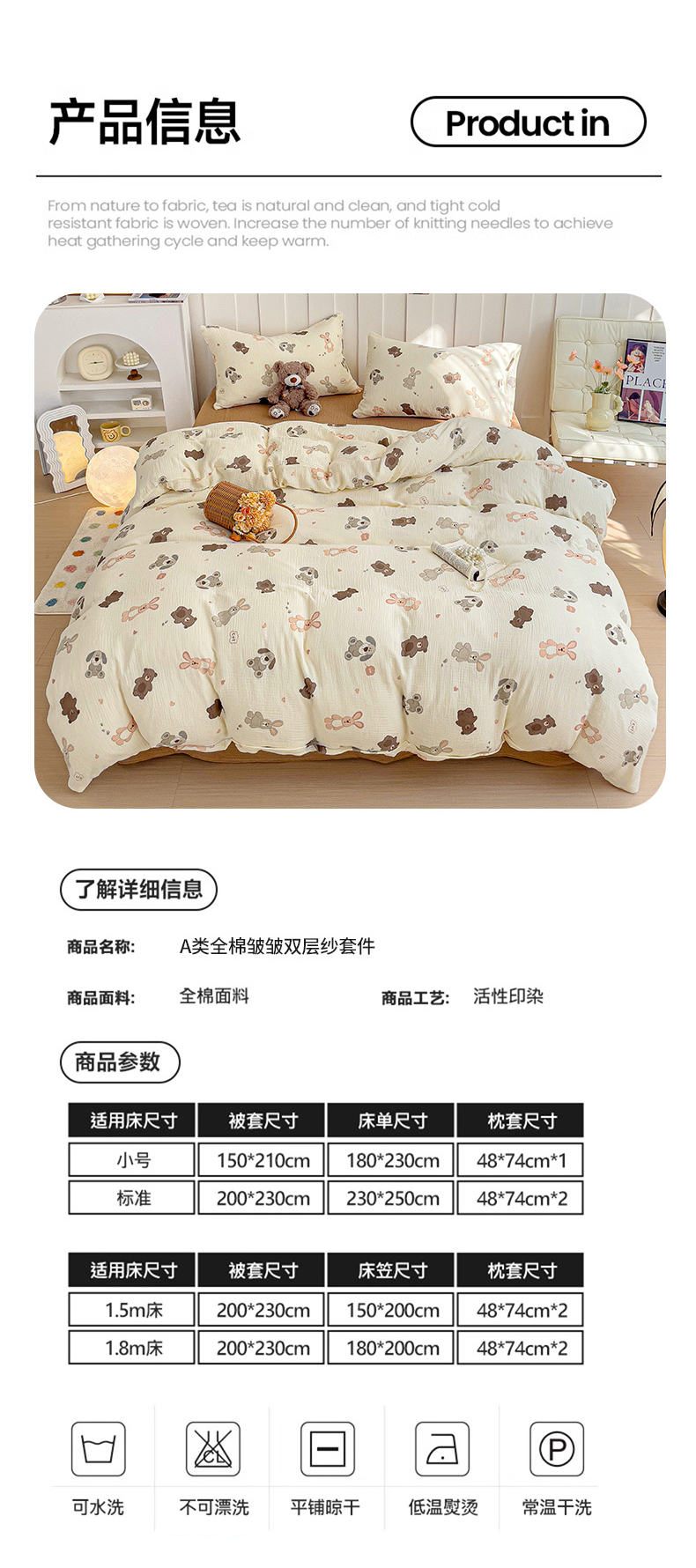 商品名称:(总)珺柔家纺 2024新款全棉皱皱双层纱印花四件套