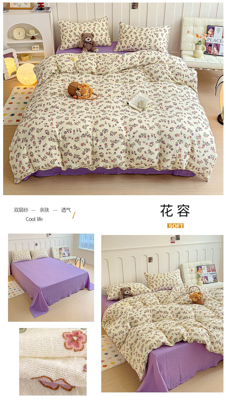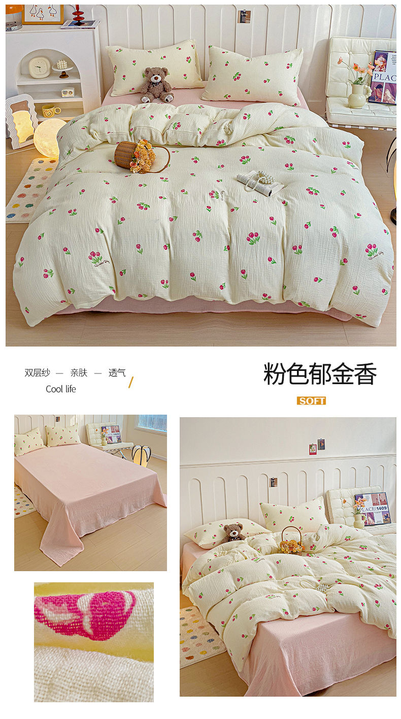 (总)珺柔家纺 2024新款全棉皱皱双层纱印花四件套
