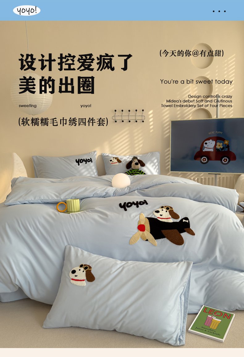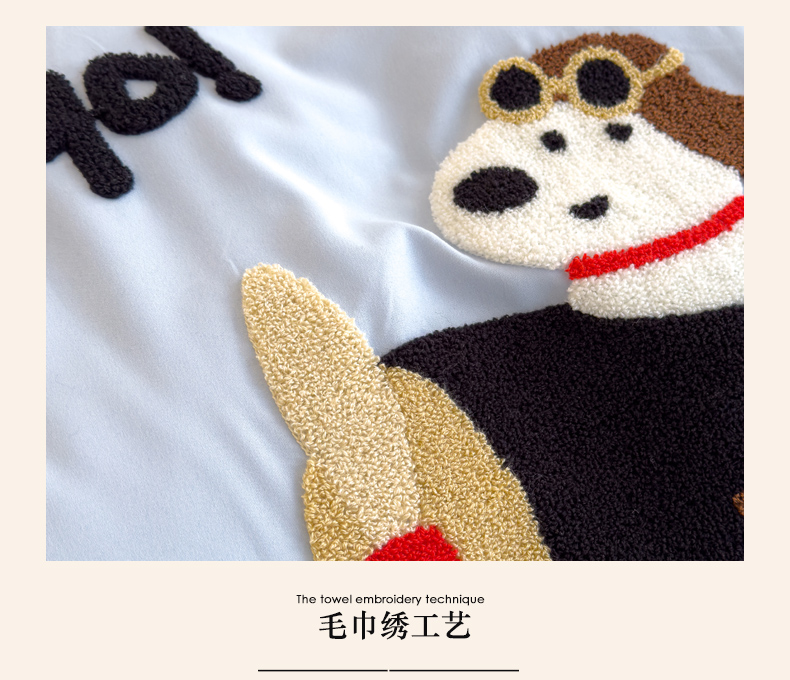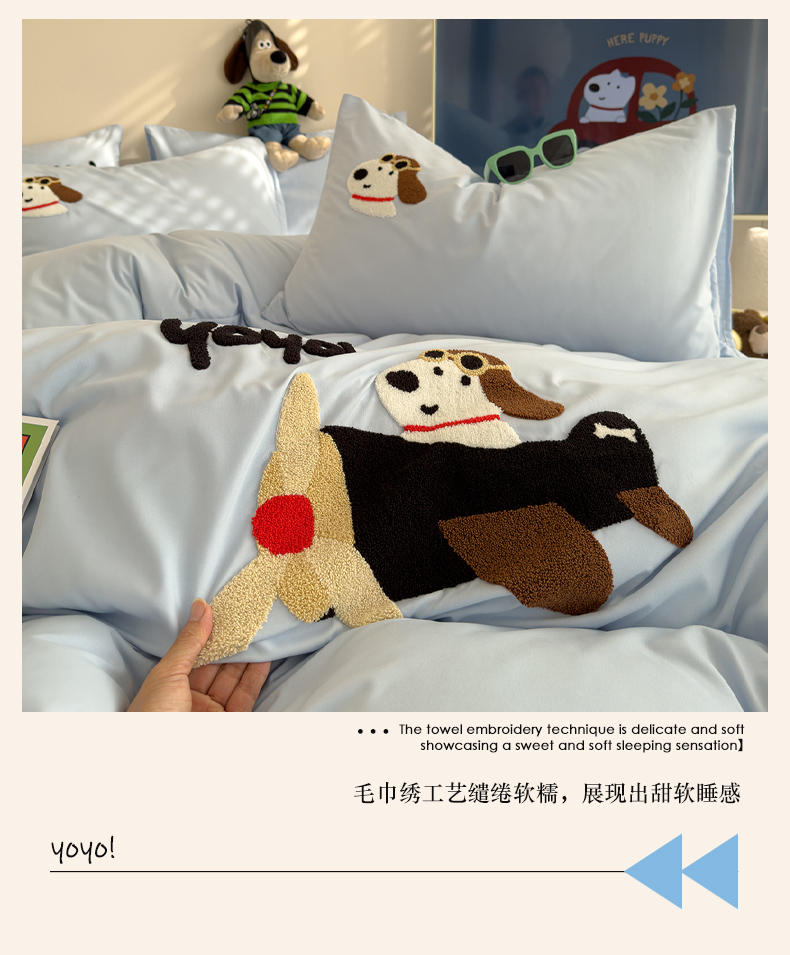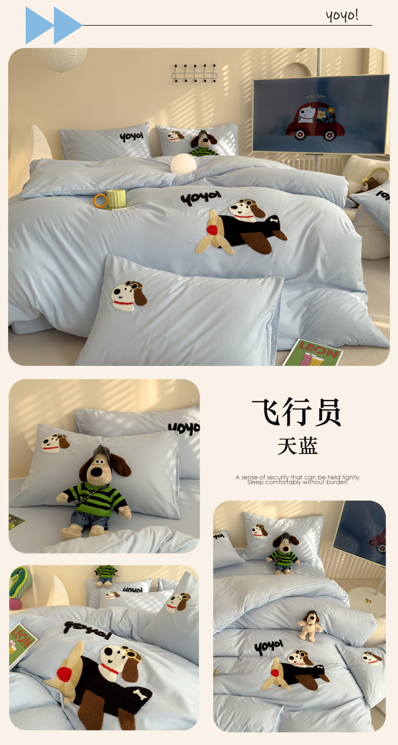 当前位置: 91家纺网 > 商品网购 > 床品套件 > 四件套 > 毛巾绣四件套 > 曼谷家纺 新款毛巾绣四件套小狗图案柔软磨毛床上用品水洗棉套件 飞行员-天蓝