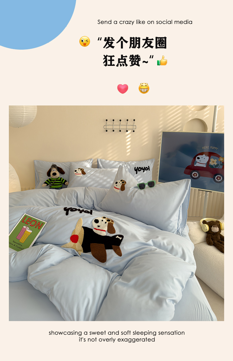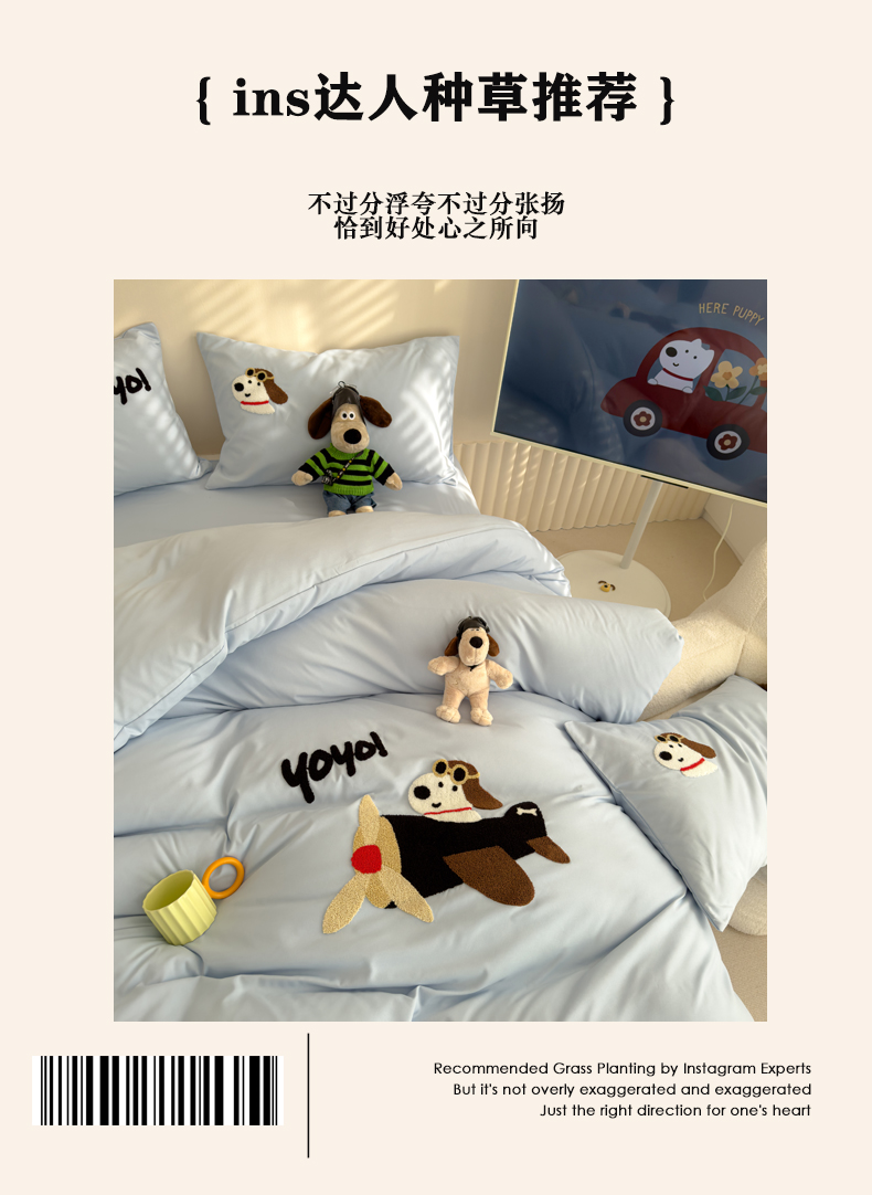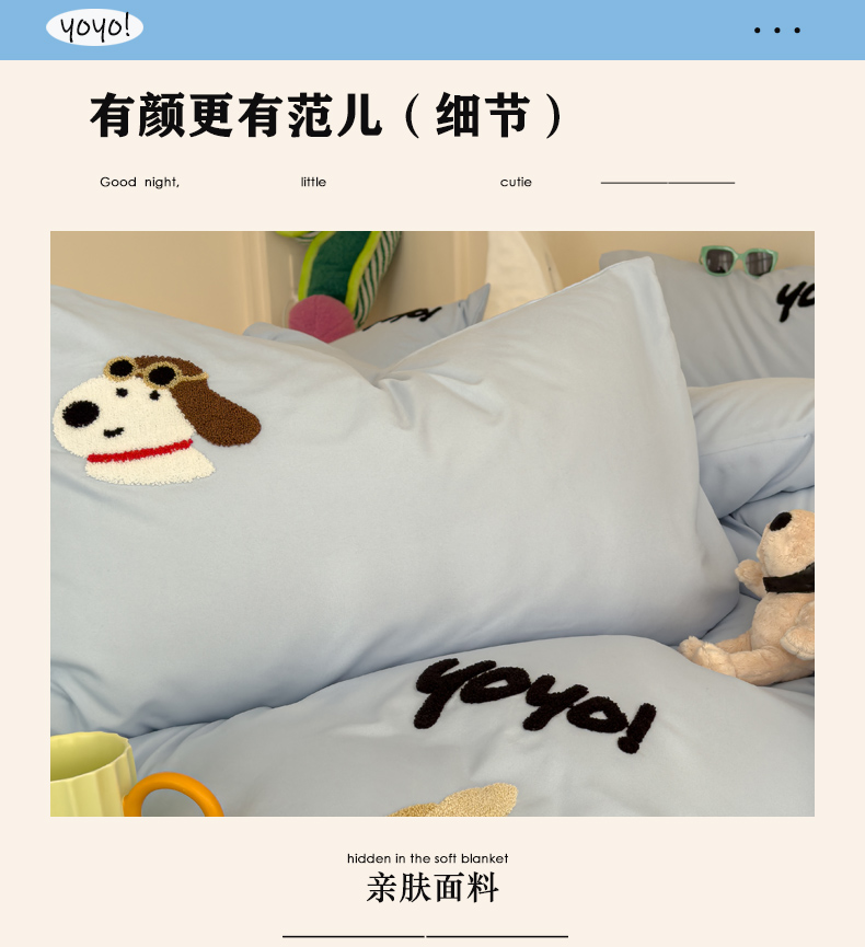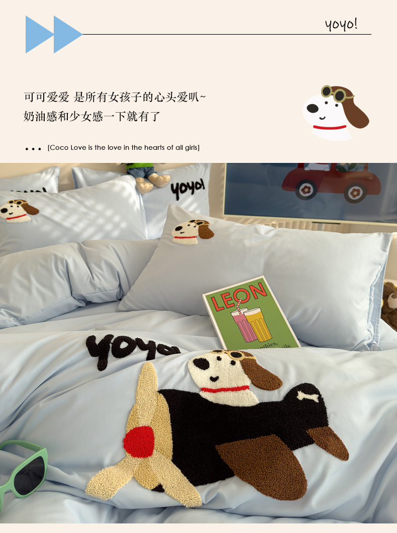 当前位置: 91家纺网 > 商品网购 > 床品套件 > 四件套 > 毛巾绣四件套 > 曼谷家纺 新款毛巾绣四件套小狗图案柔软磨毛床上用品水洗棉套件 飞行员-天蓝