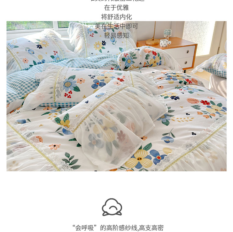 (总)亲亲公主 2025全棉蕾丝花边床裙公主风四件套,甜心花园-玉色,甜心花园-绿色,甜心花园-黄色,甜心花园-浅紫色,甜心花园-蓝色,甜心花园-粉色
