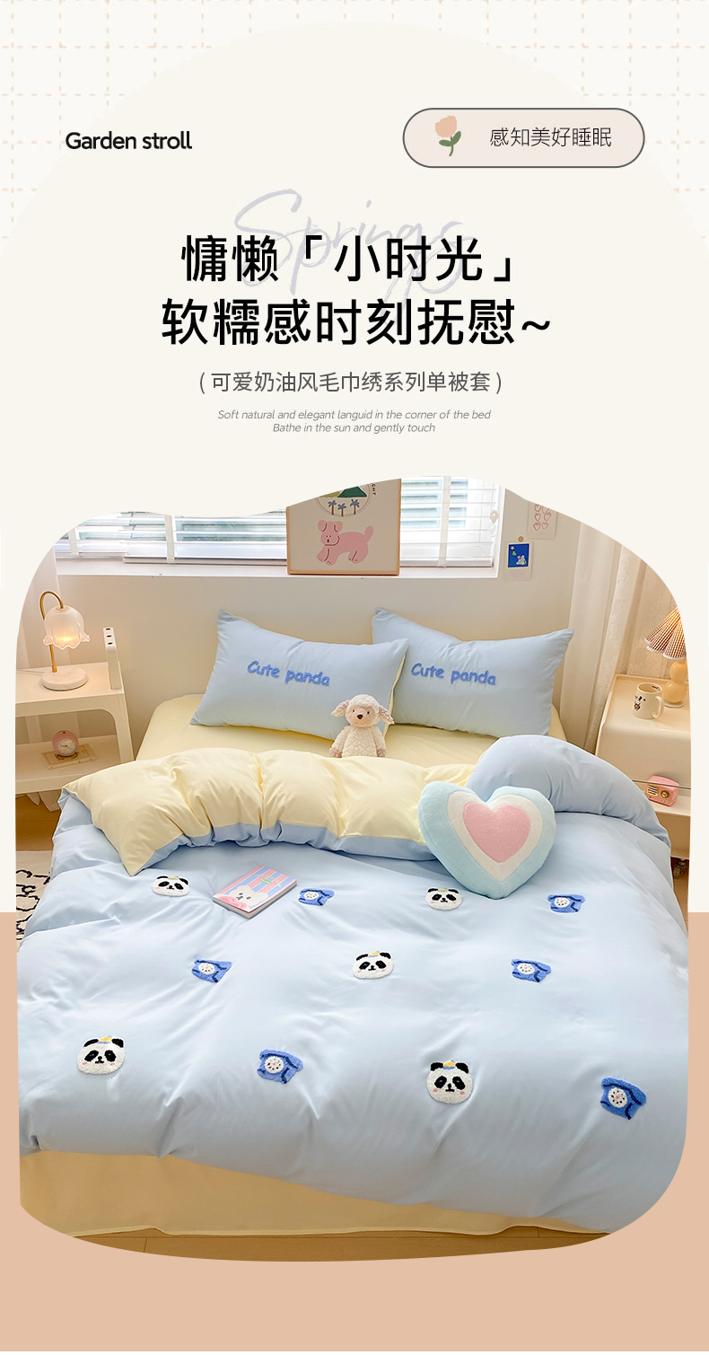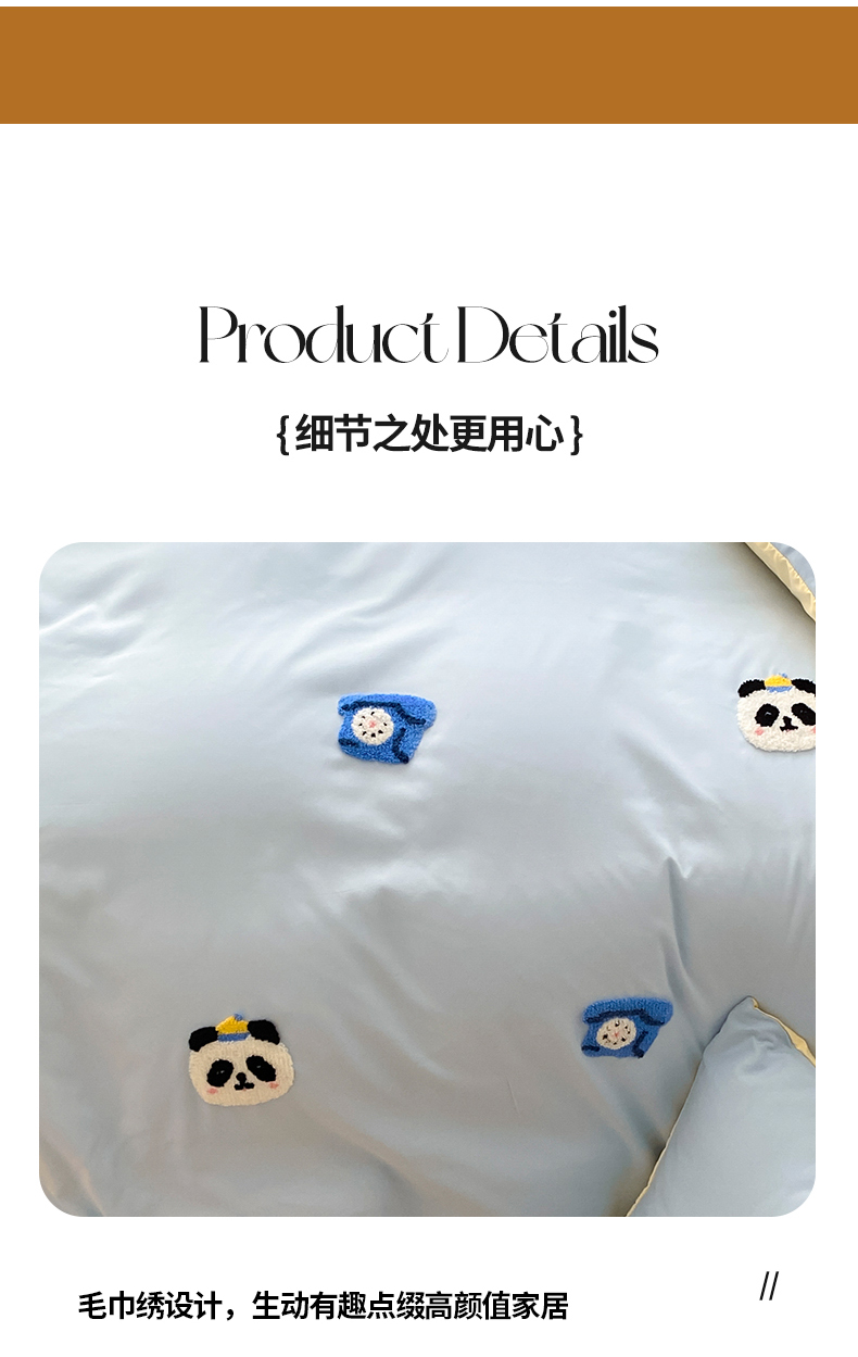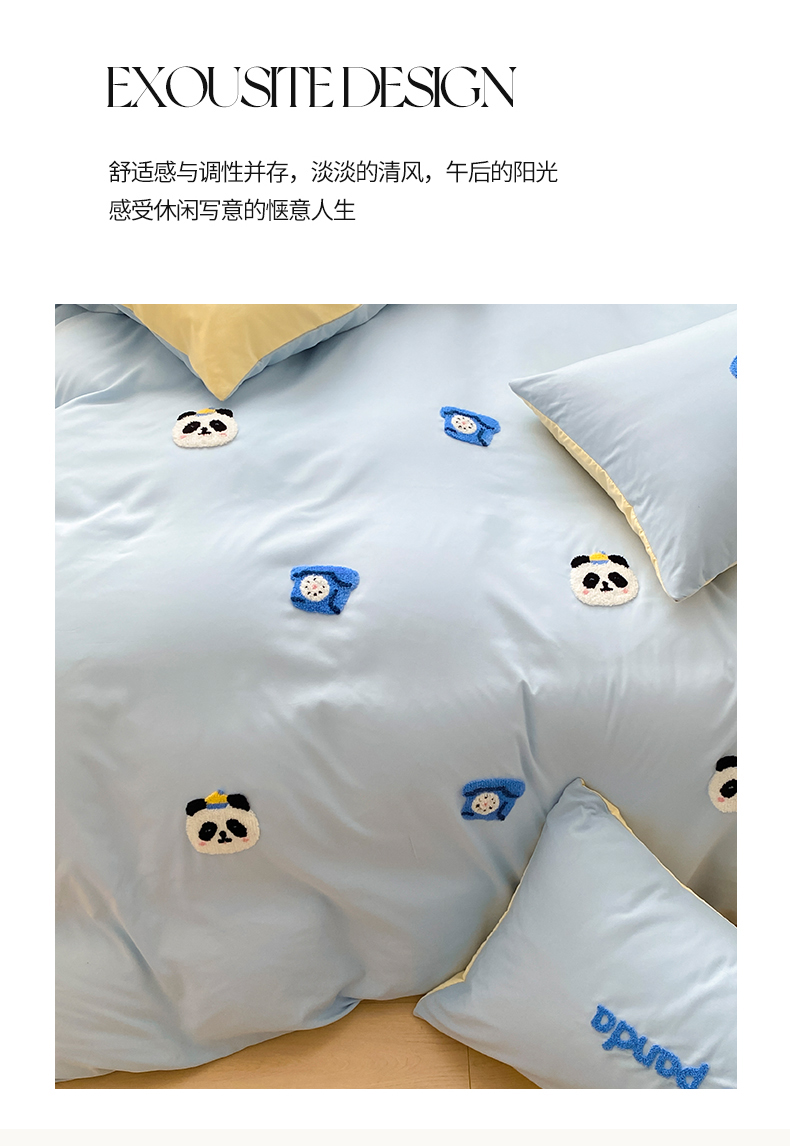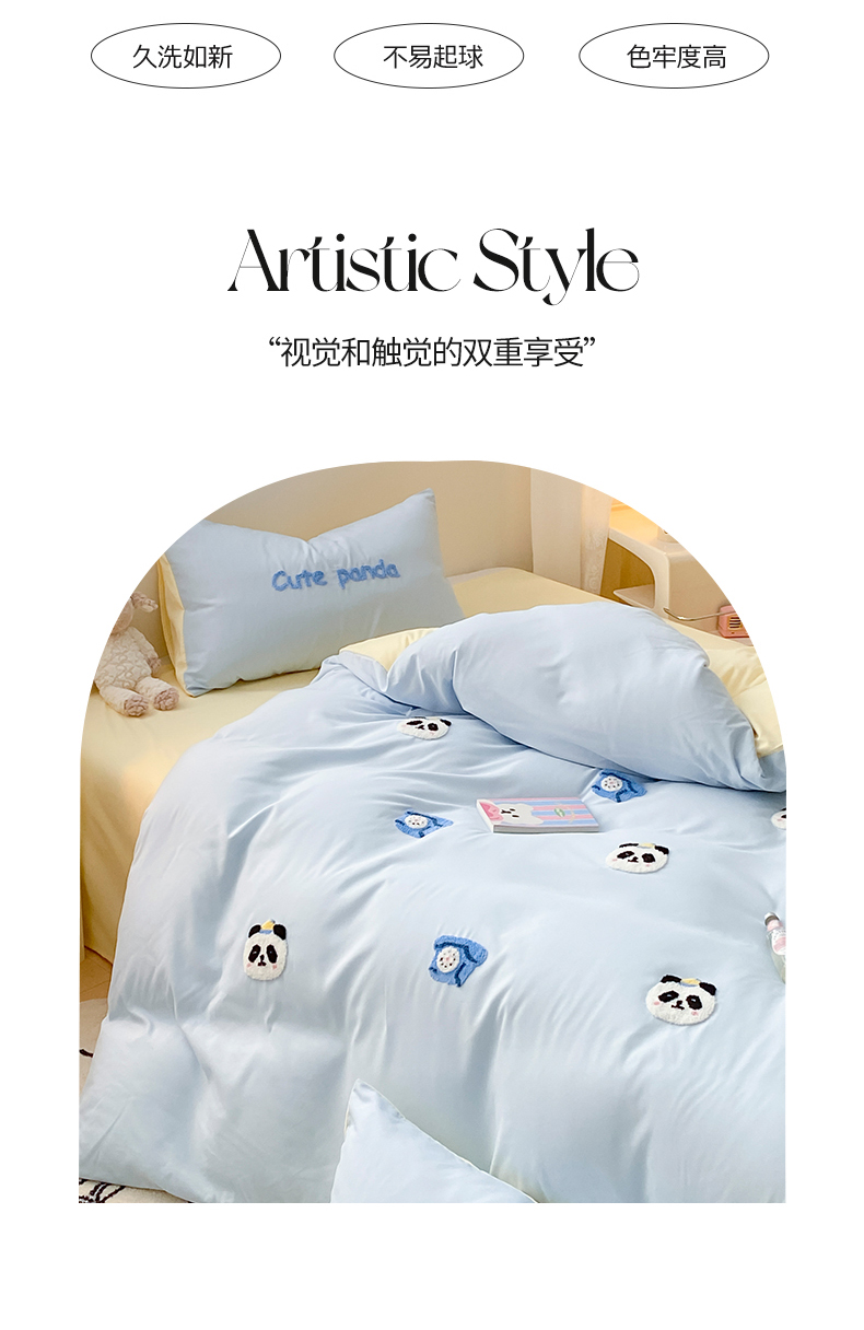 商品名称:尤米 2024新款奶油风水洗棉系列单被套 小熊猫-蓝