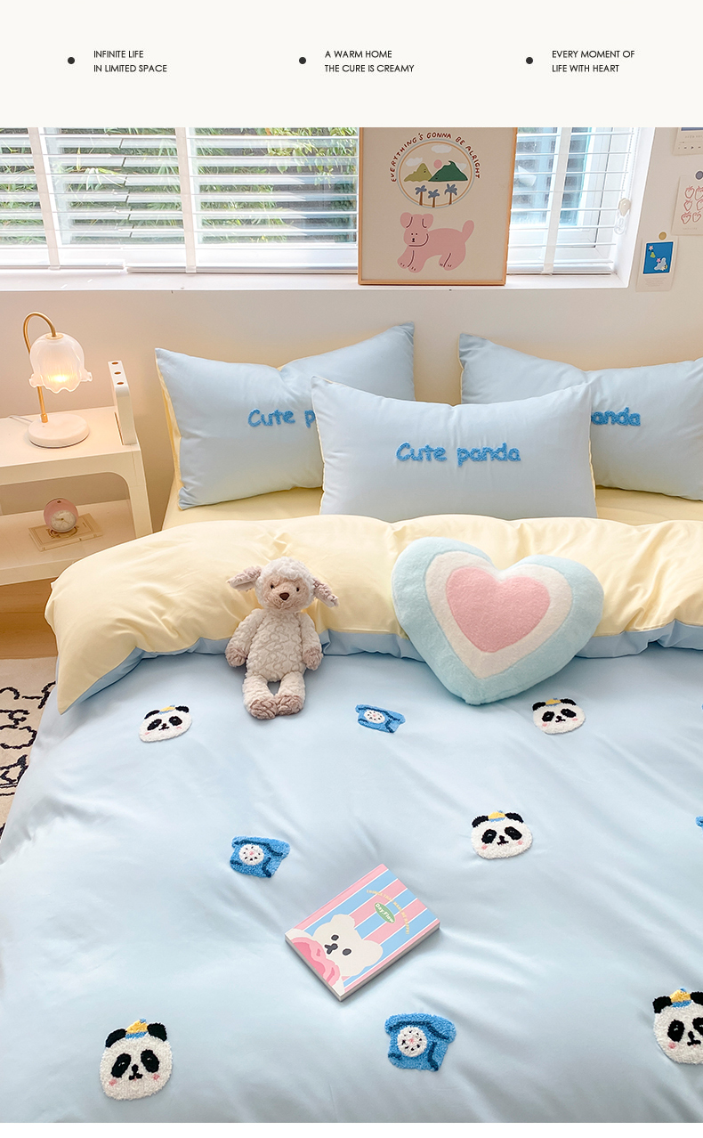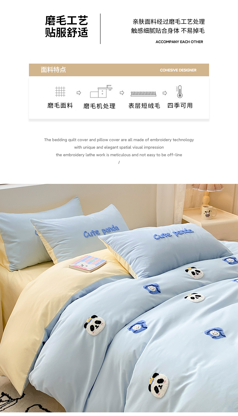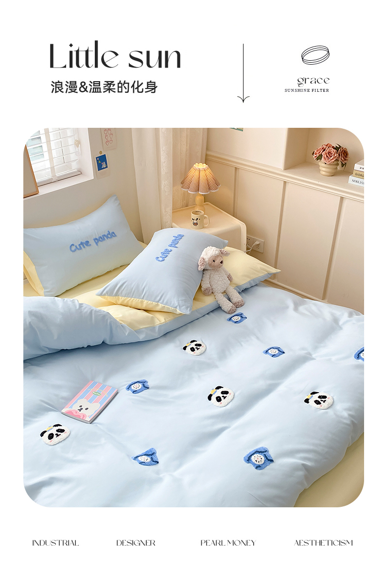 商品名称:尤米 2024新款奶油风水洗棉系列单被套 小熊猫-蓝