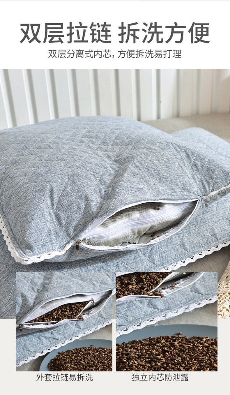 (总)兴丝露枕芯 全棉荞麦枕芯48x74cm 全荞麦壳枕芯 全棉绗绣荞麦枕头 荞麦壳枕 保健护颈枕 夏凉枕头