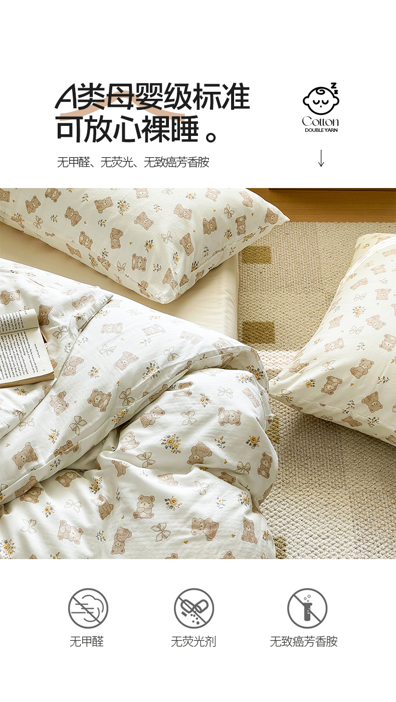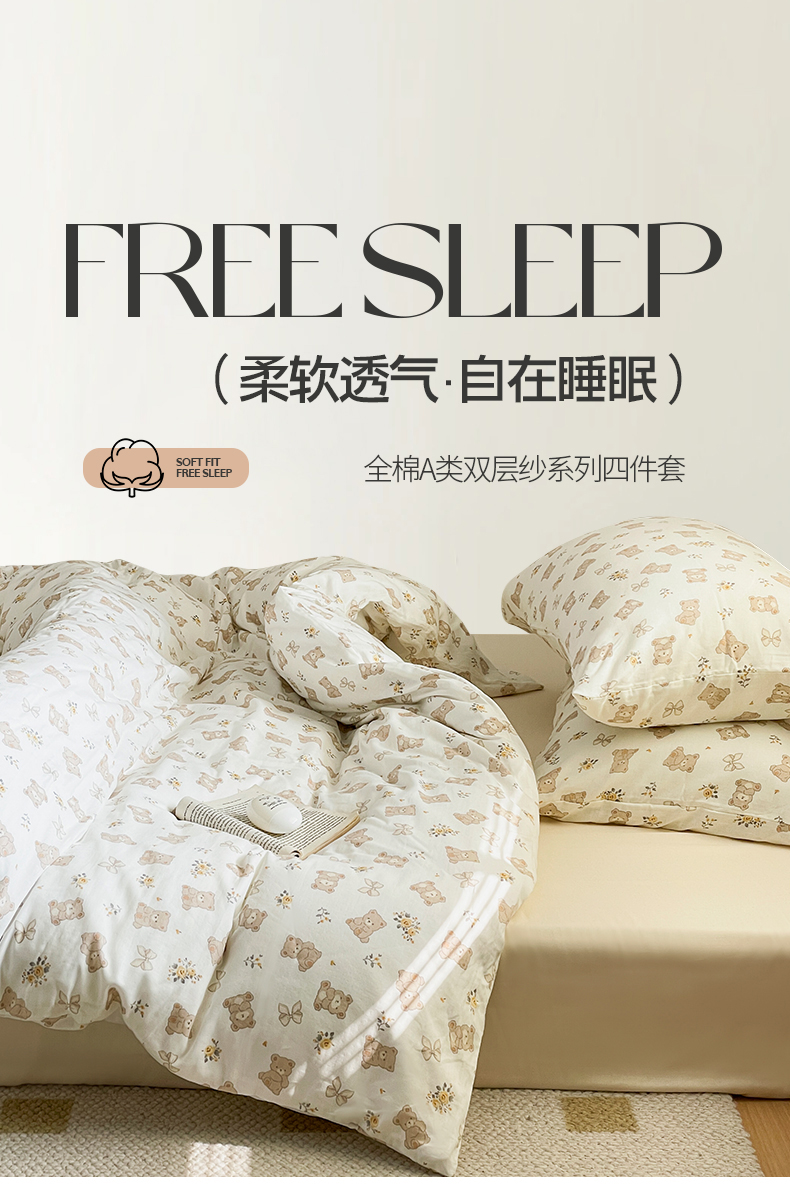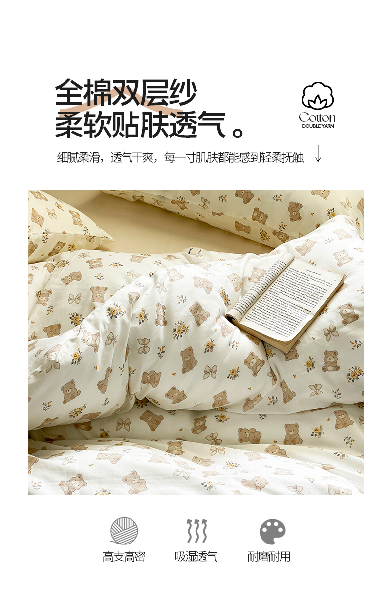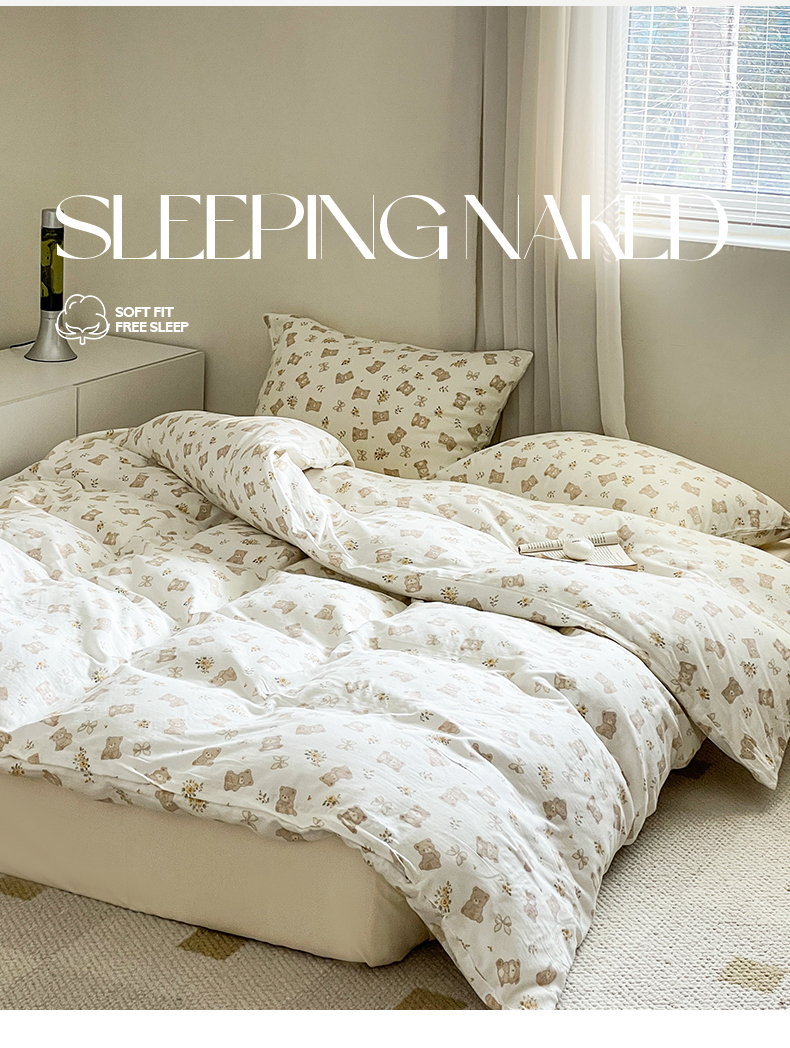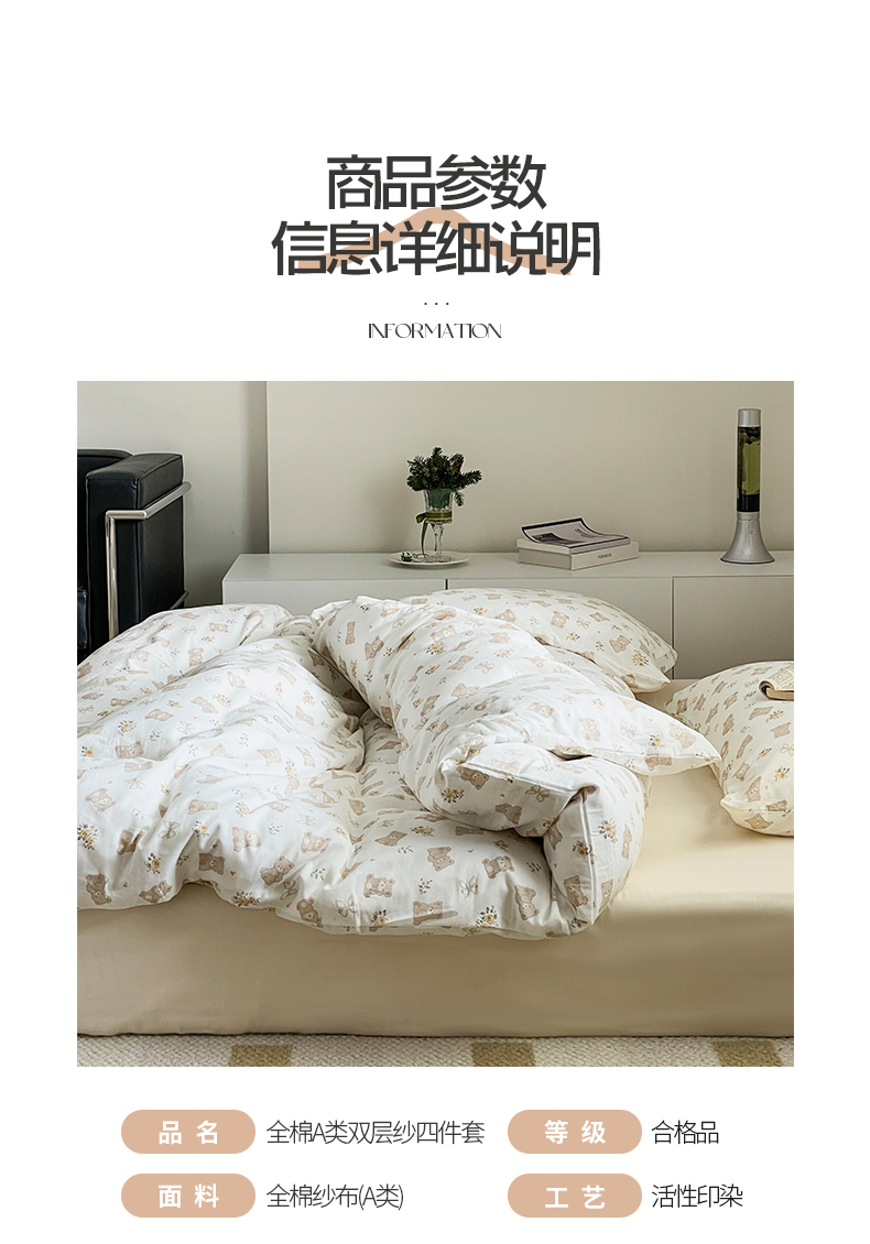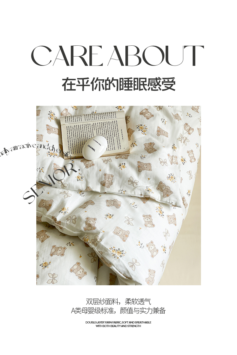 当前位置: 91家纺网 > 商品网购 > 床品套件 > 四件套 > 全棉普通四件套 > 窝米 2024春季新品全棉双层纱系列四件套 美丽熊
