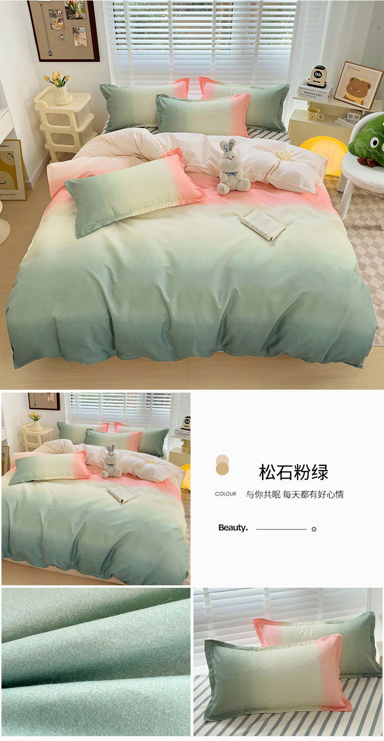 商品名称:楠沐家纺 2025新款亲肤柔软水洗棉磨毛印花被套 松石粉绿