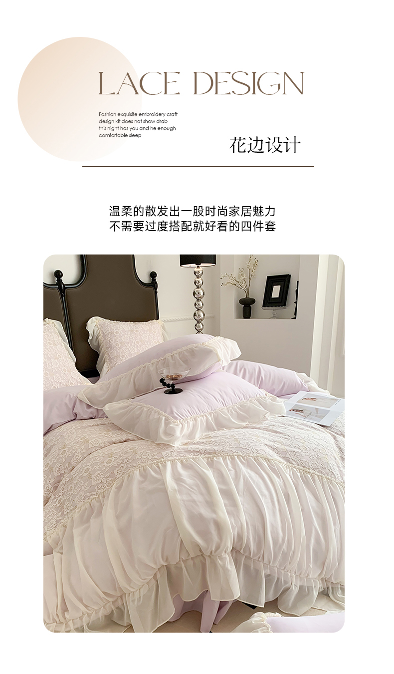 (总)吾欢心 2025秋冬新款加厚雕花绒婴儿绒安娜贝尔系列法式双层花边四件套,安娜贝尔白,安娜贝尔粉,安娜贝尔咖,安娜贝尔蓝,安娜贝尔绿,安娜贝尔紫