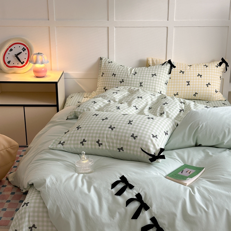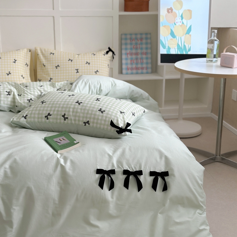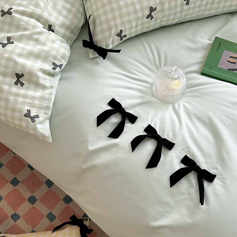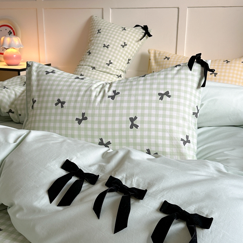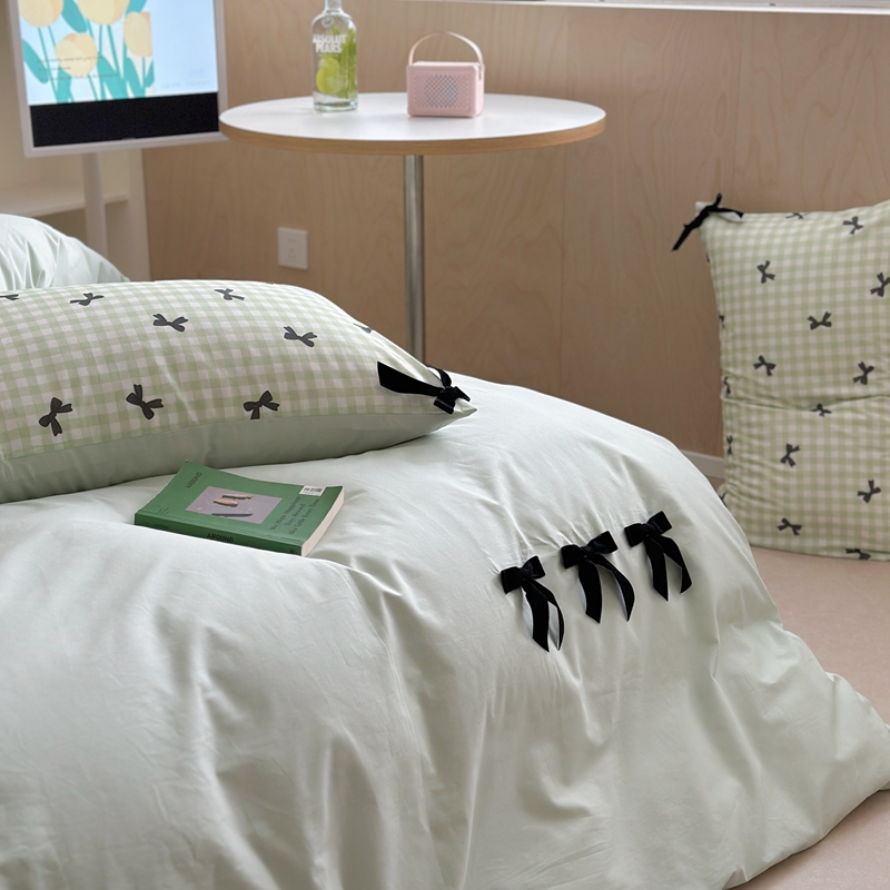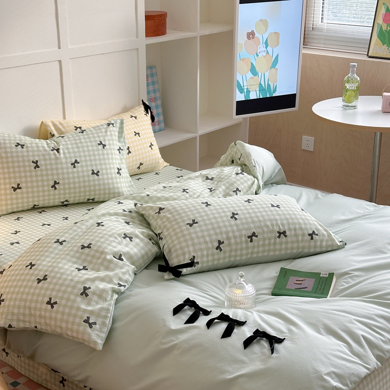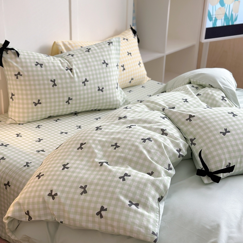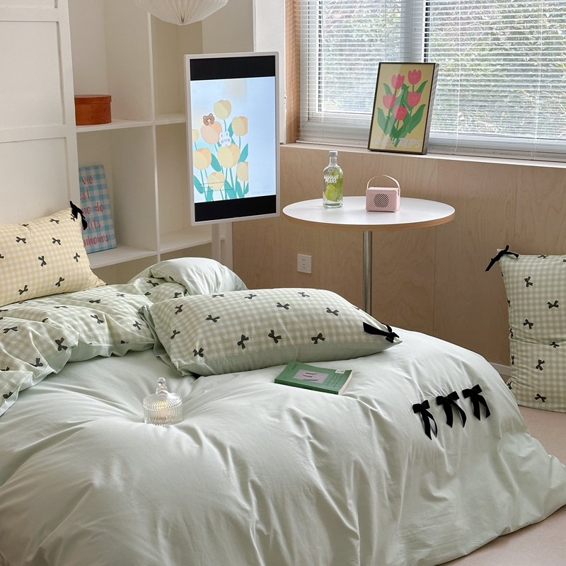 柚子YOUTH 2024新款工艺蝴蝶结水洗棉四件套 蝴蝶结-绿格