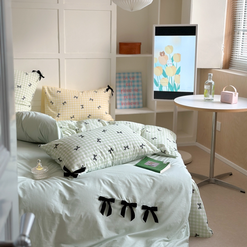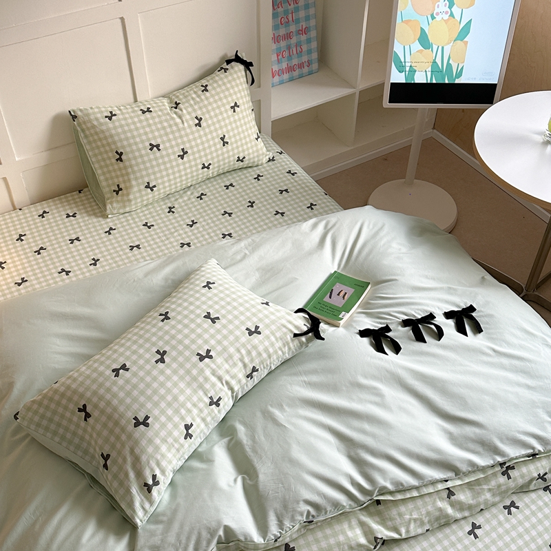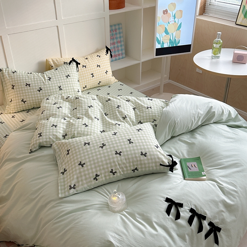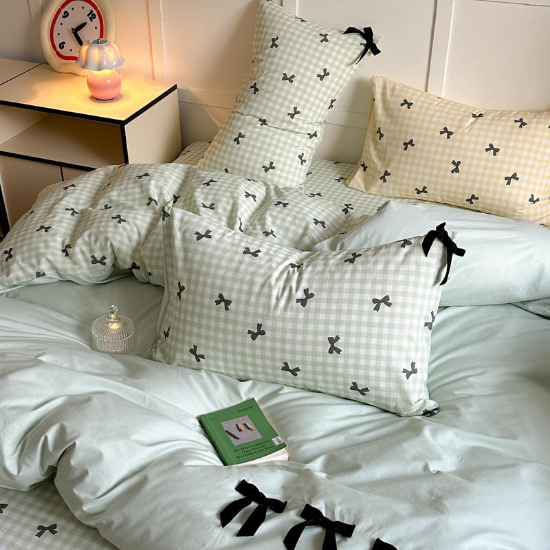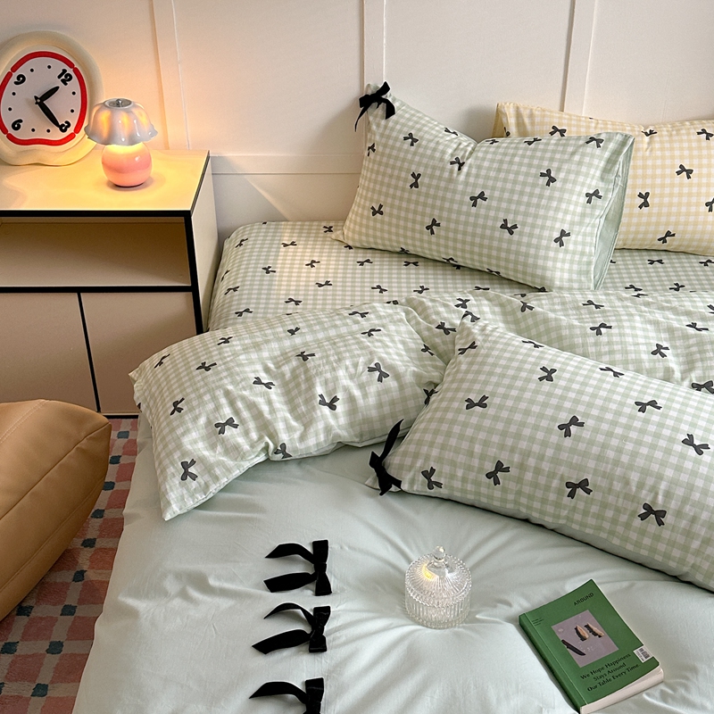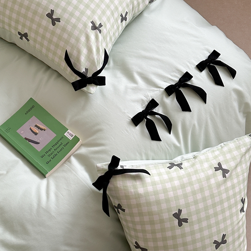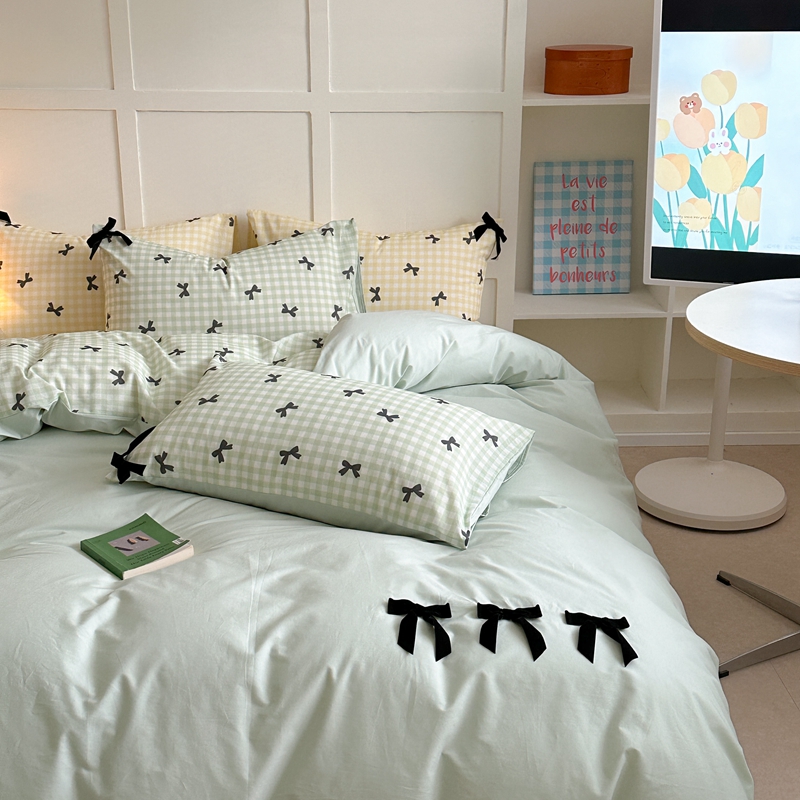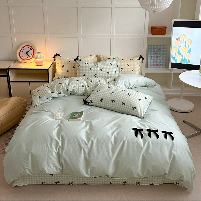 柚子YOUTH 2024新款工艺蝴蝶结水洗棉四件套 蝴蝶结-绿格