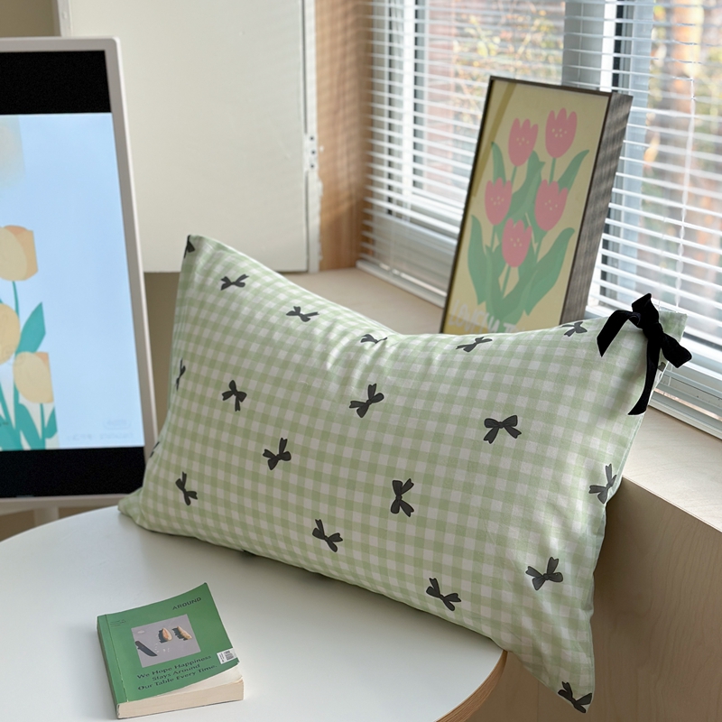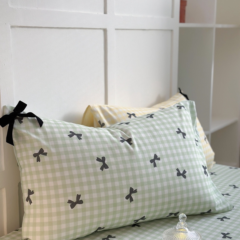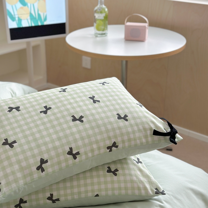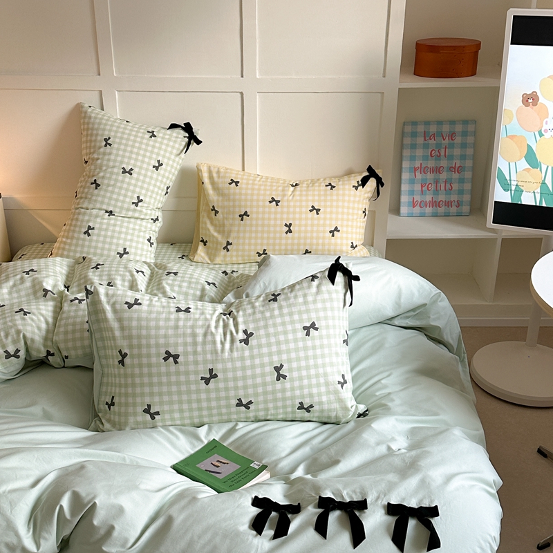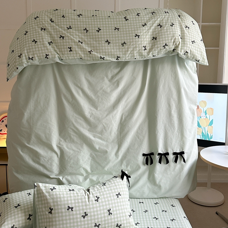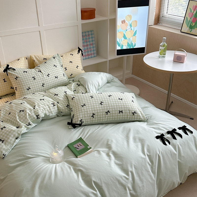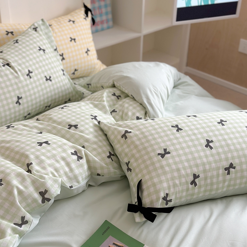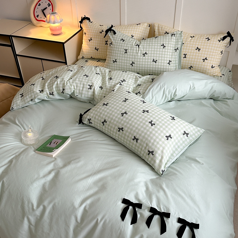 柚子YOUTH 2024新款工艺蝴蝶结水洗棉四件套 蝴蝶结-绿格