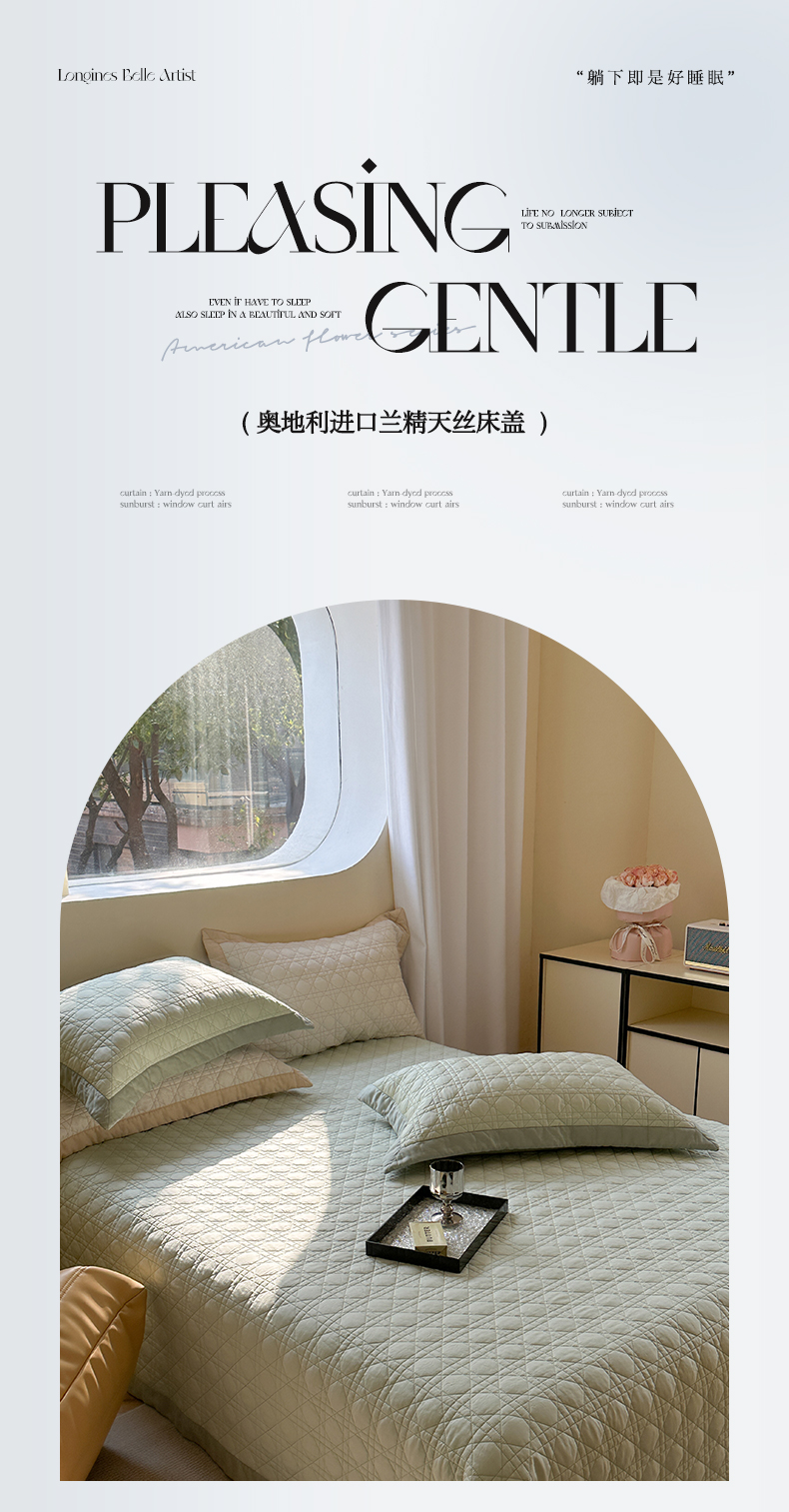 商品名称:琳可家居2024新款宝格丽系列兰精天丝直边床盖 绿色