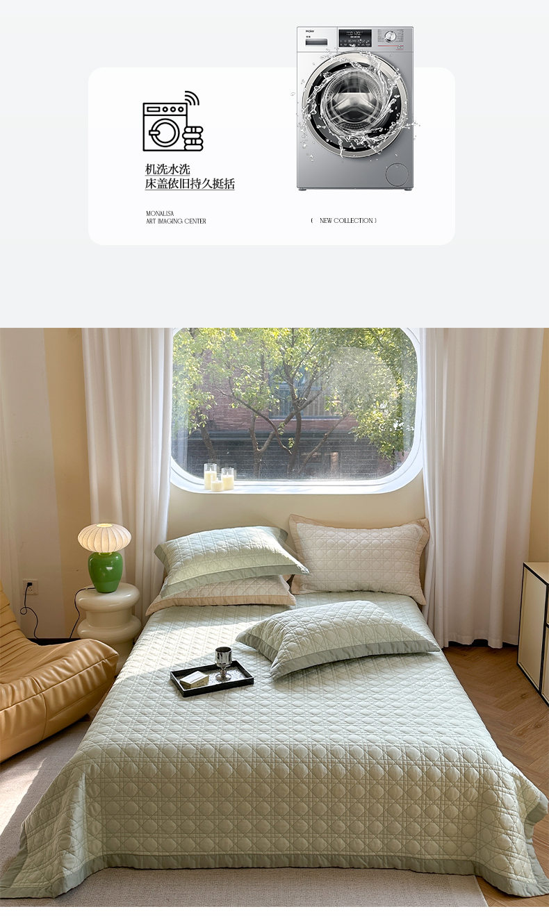 2022新款40S纯棉水洗棉韩版全棉荷叶边夹棉绗缝床盖三件套,海盐蓝,静谧灰,抹茶绿,奶油黄,千黛紫,浅豆沙,悠悠粉,云朵白,马卡桔,青草绿