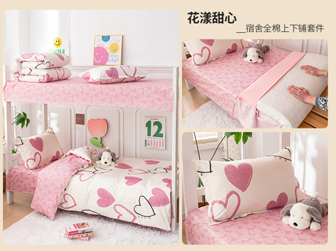 纯棉印花13070学生三件套寝室全棉宿舍床套件上下铺床品 花漾甜心