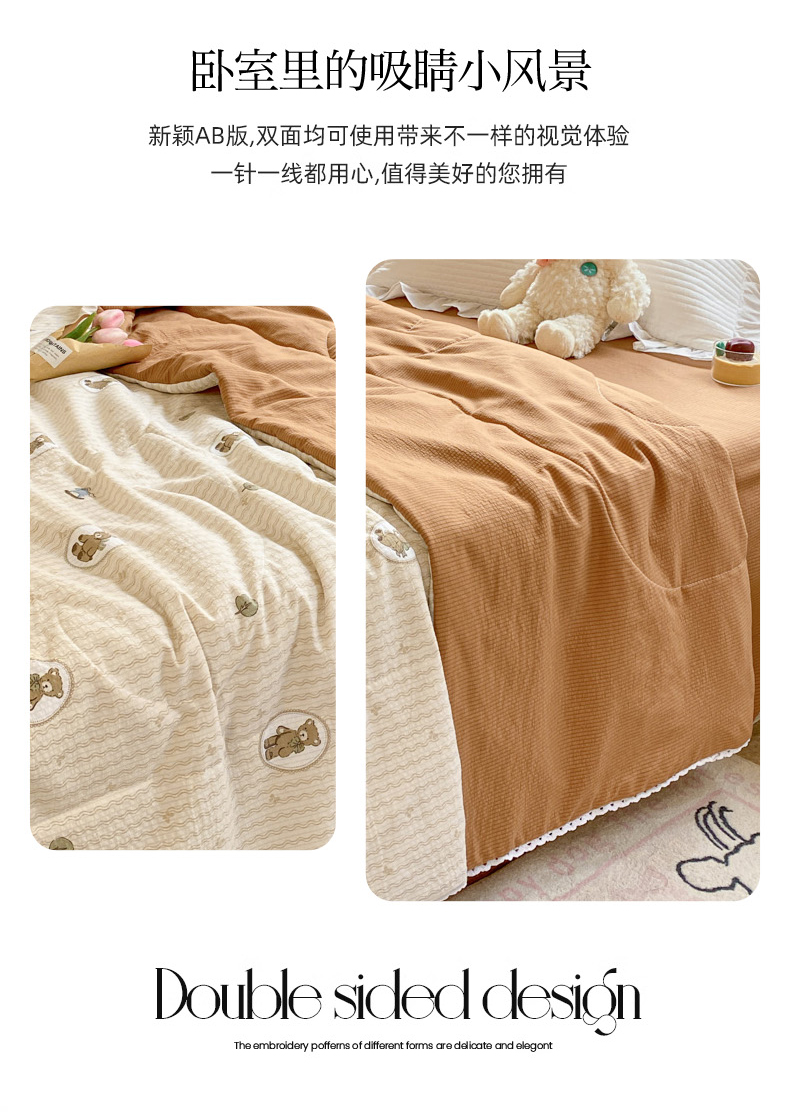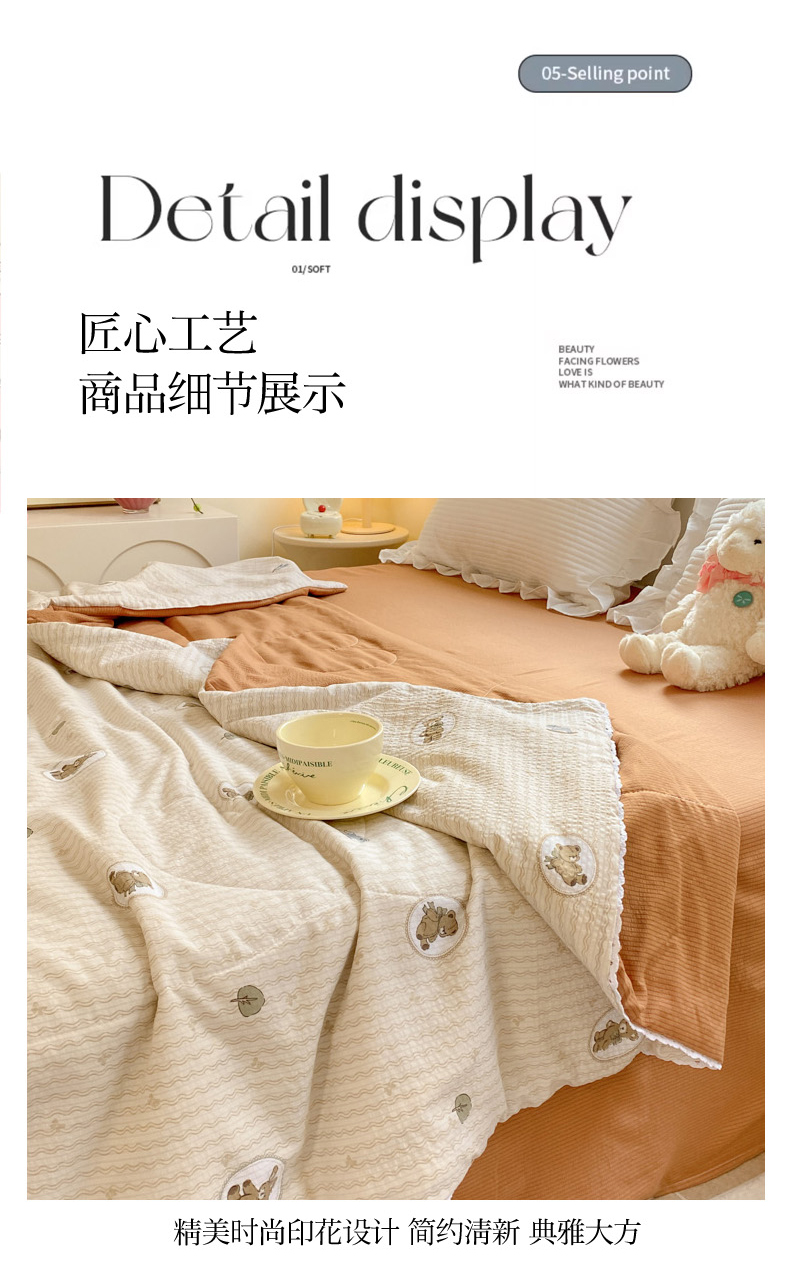 慕澄家纺 2024新款时尚印花泡泡棉花边夏被夏凉被空调被 夏被-甜小兔,夏被-甜小兔