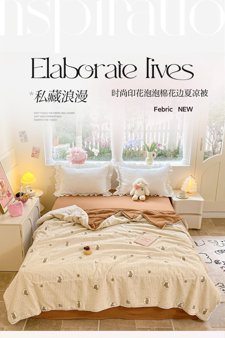 慕澄家纺 2024新款时尚印花泡泡棉花边夏被夏凉被空调被 夏被-萝莉