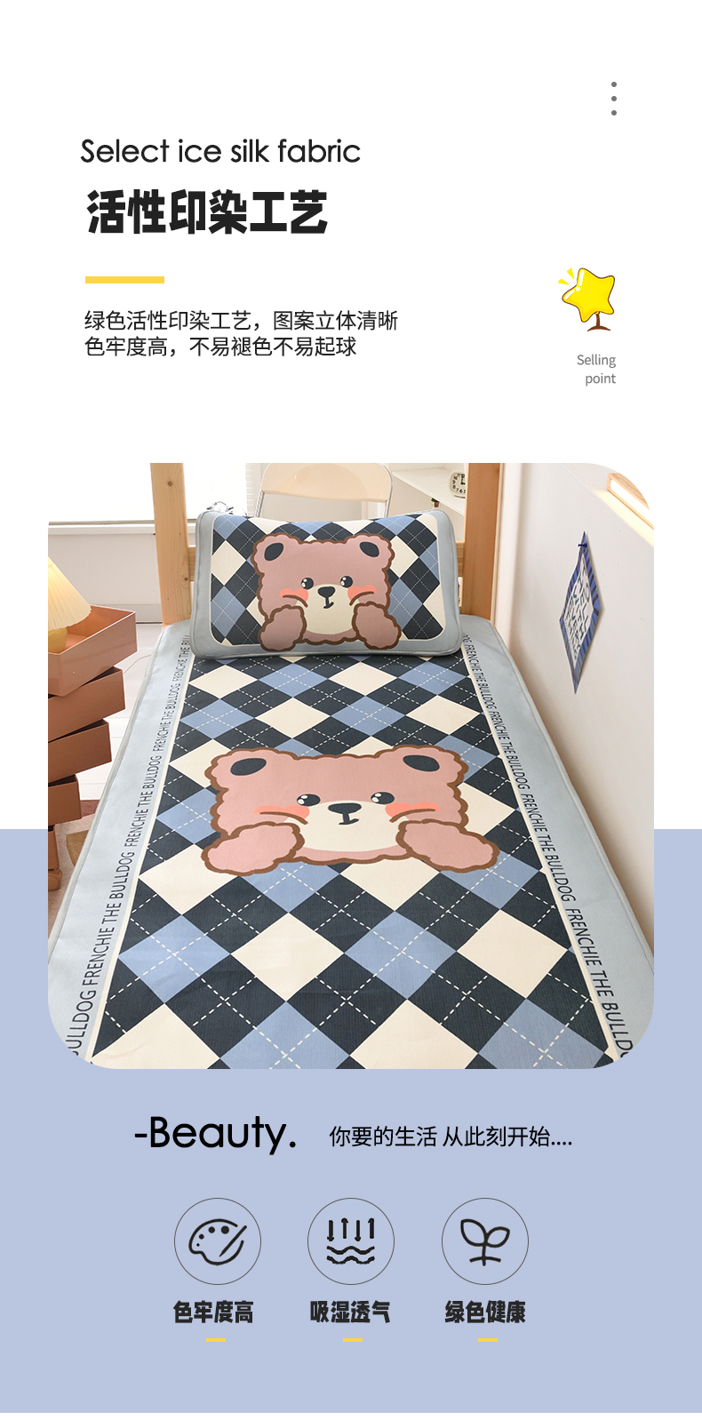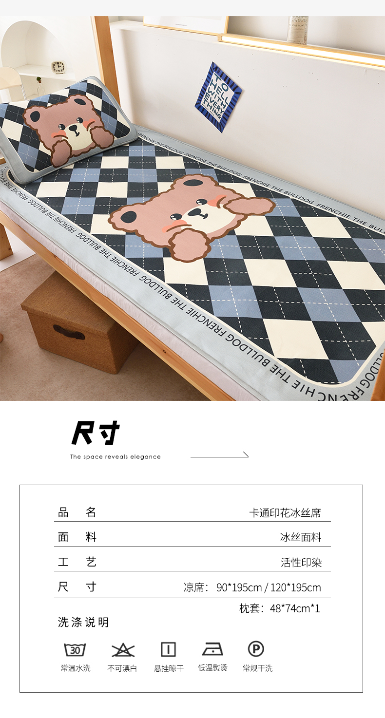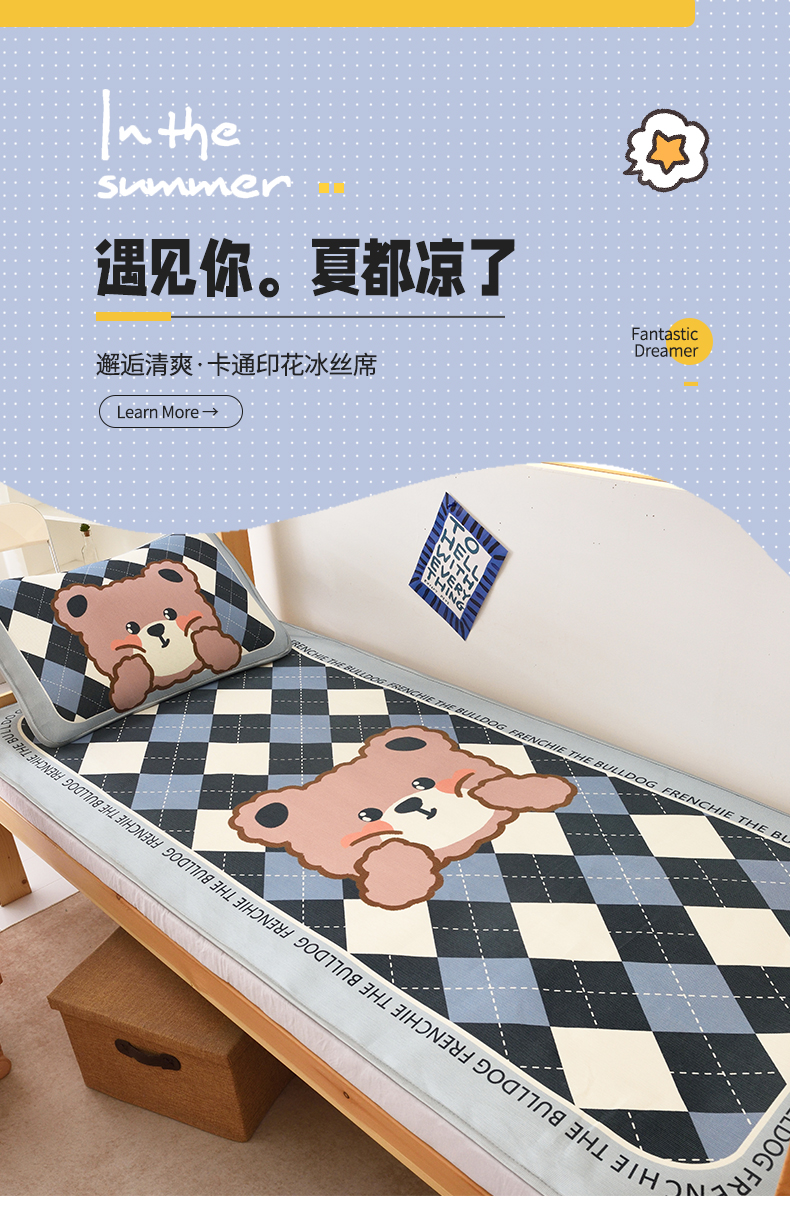 商品名称:多乐家纺 2024新款学生床数码大版印花冰丝凉席 绅士熊