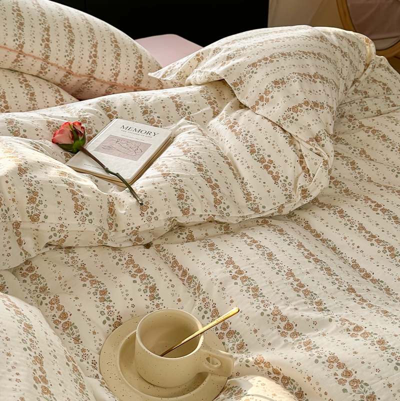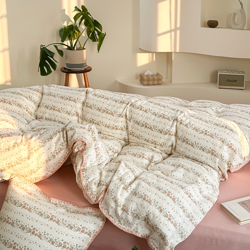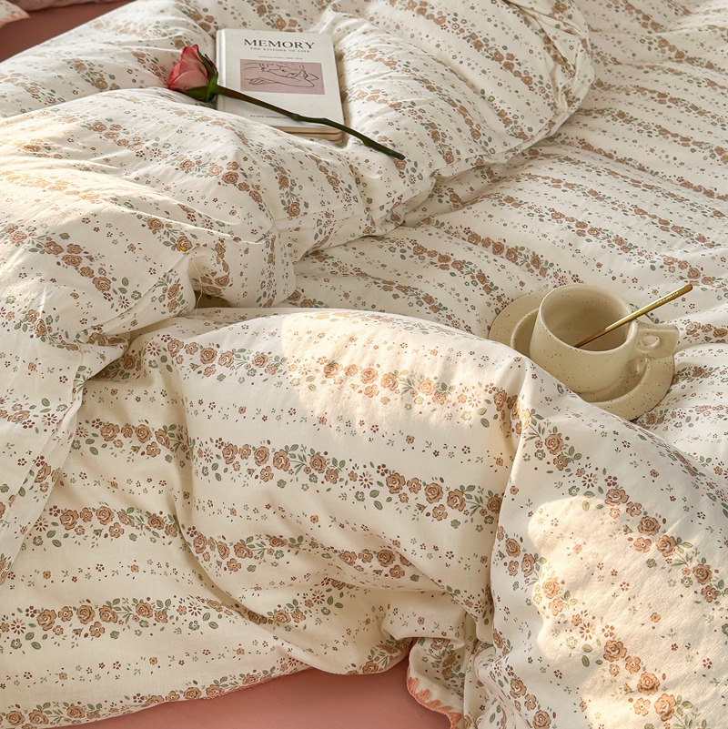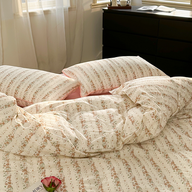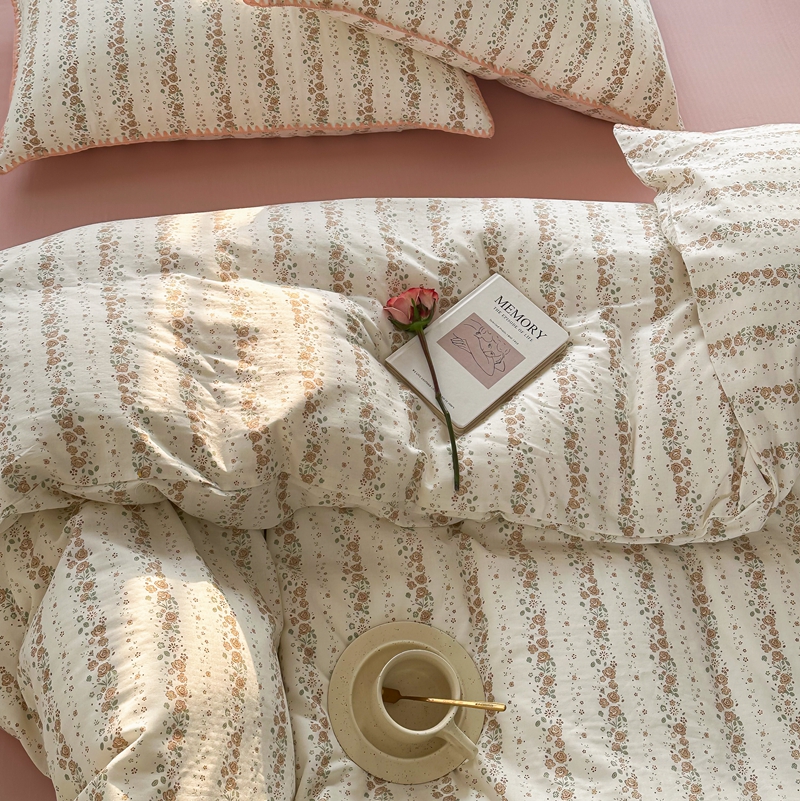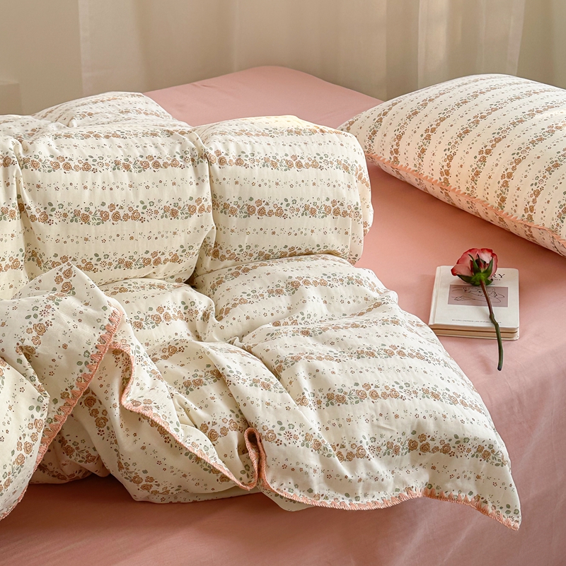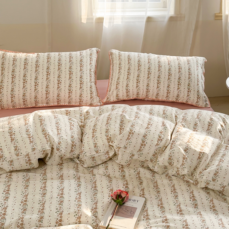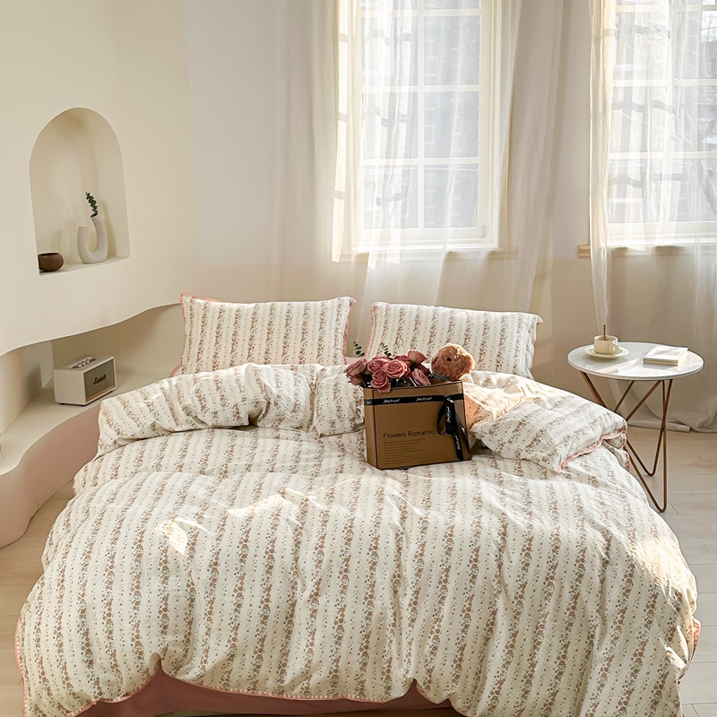 商品名称:洋铭区(原狠狠爱) 2024新款全棉双层纱四件套 桃粉小花