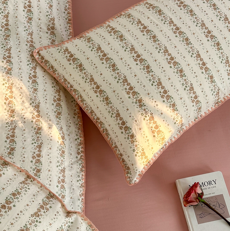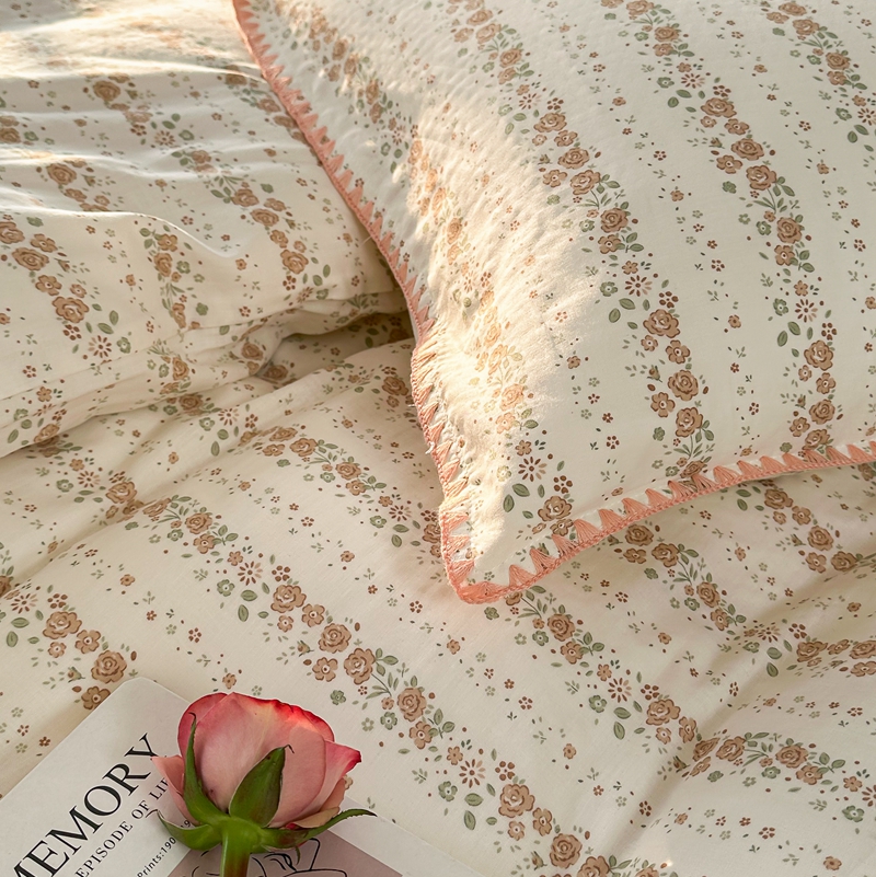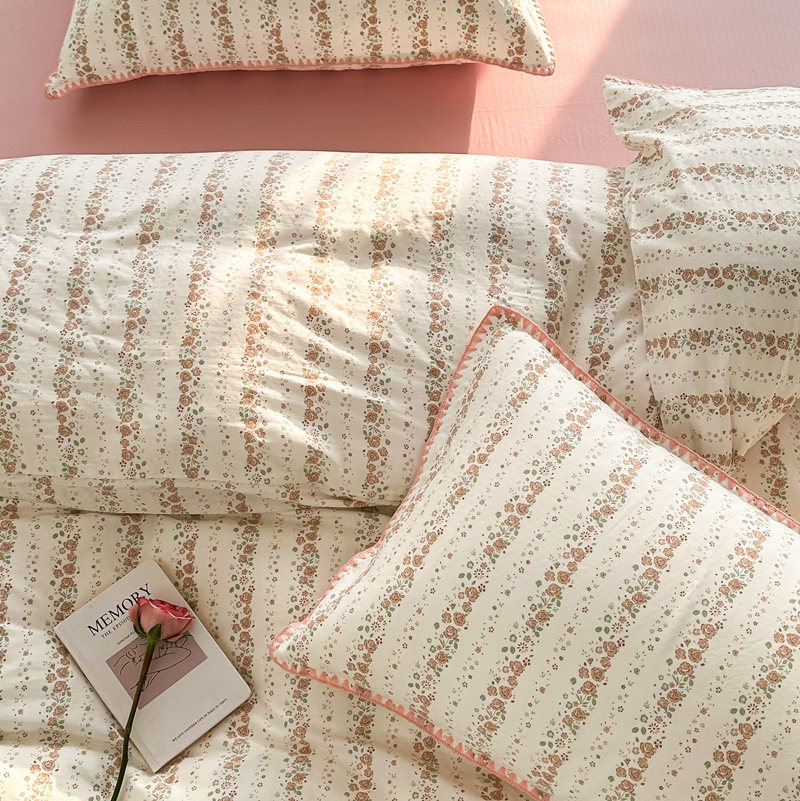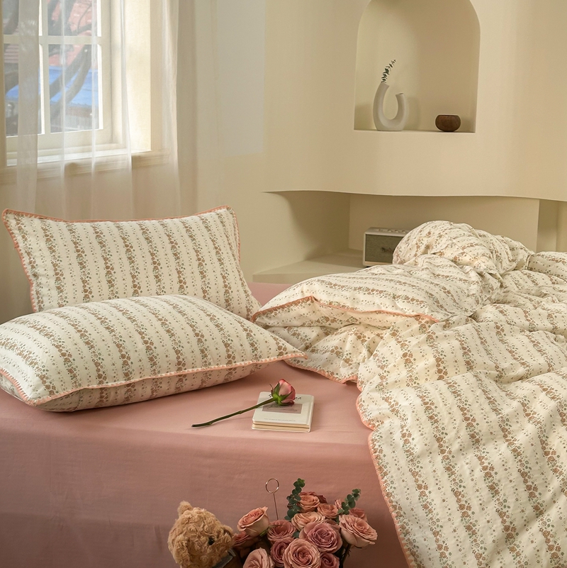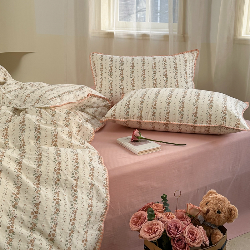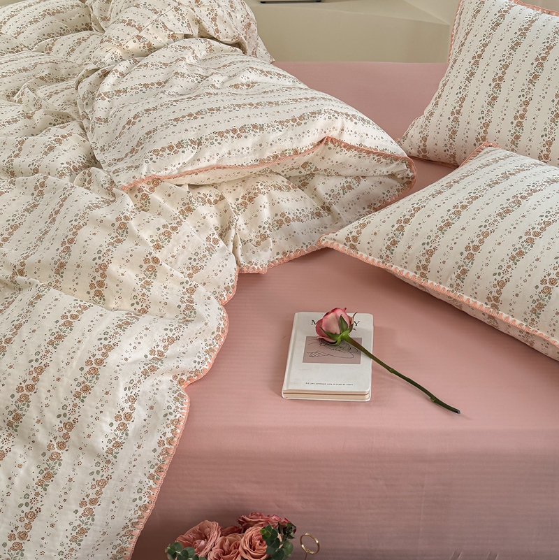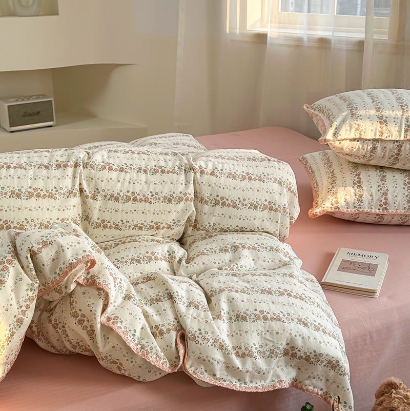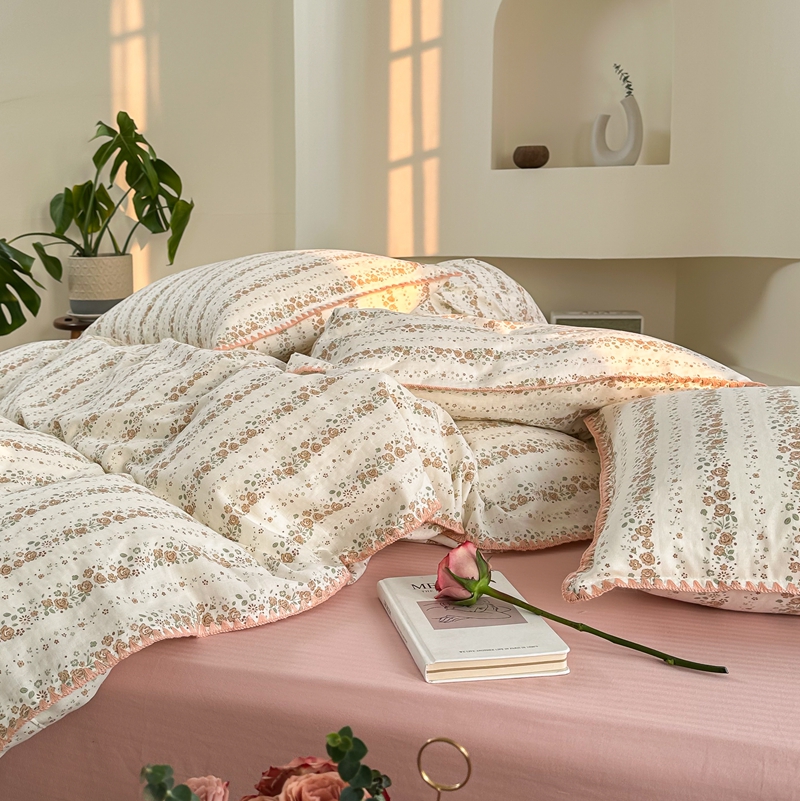 洋铭区(原狠狠爱) 2024新款全棉双层纱四件套 桃粉小花