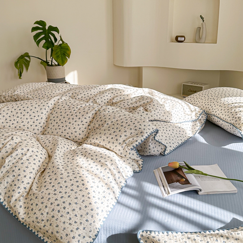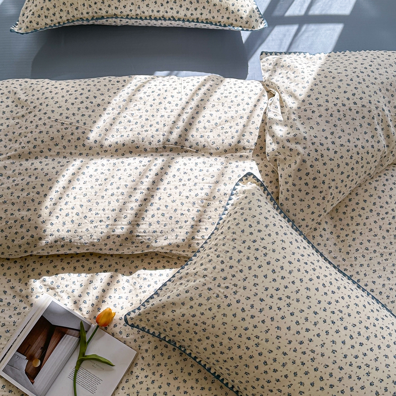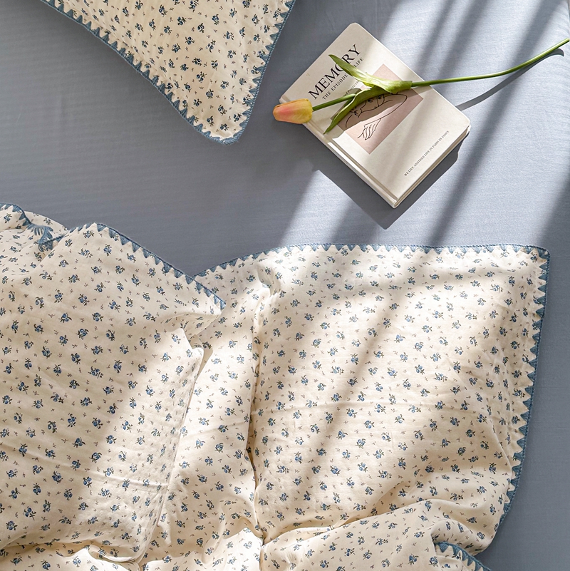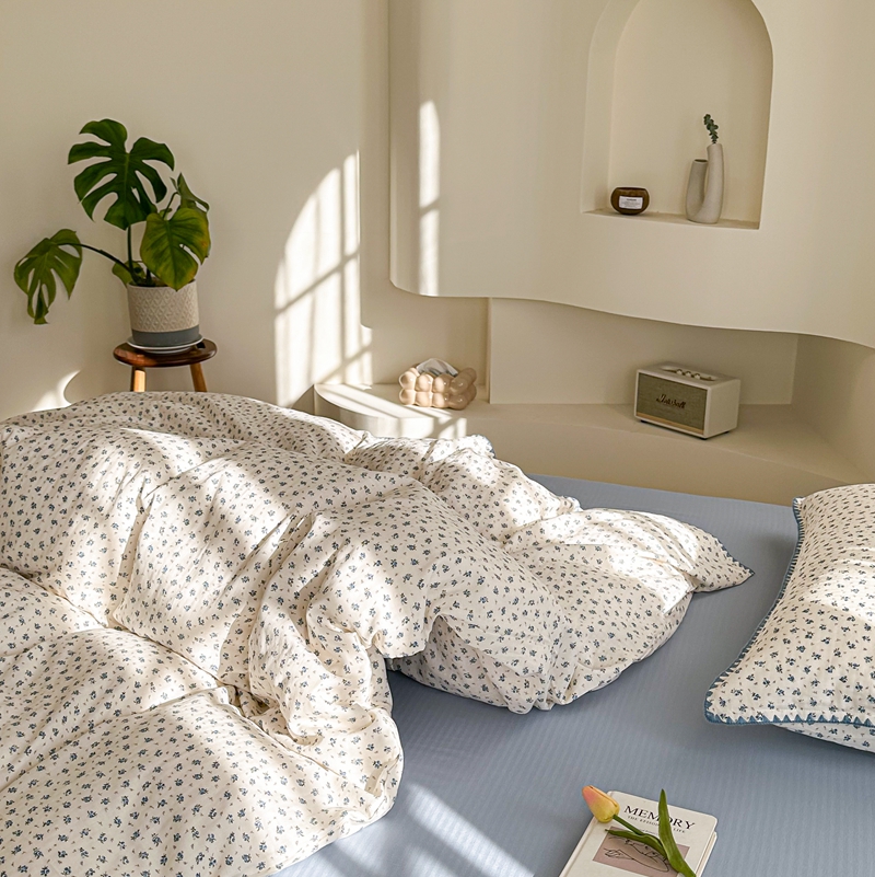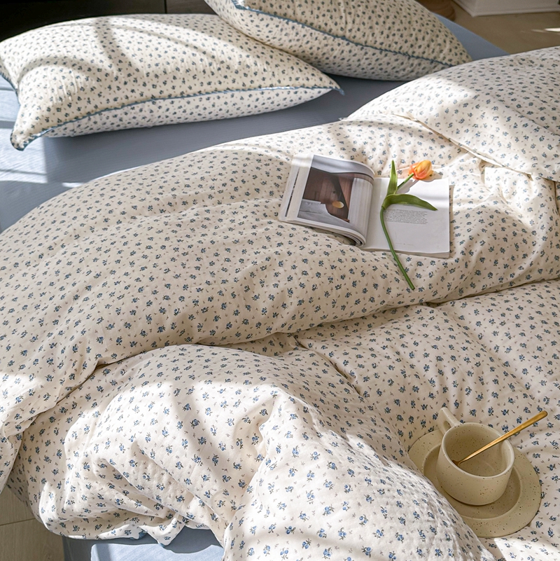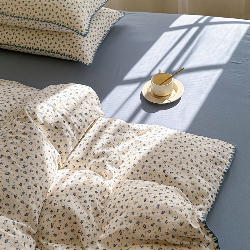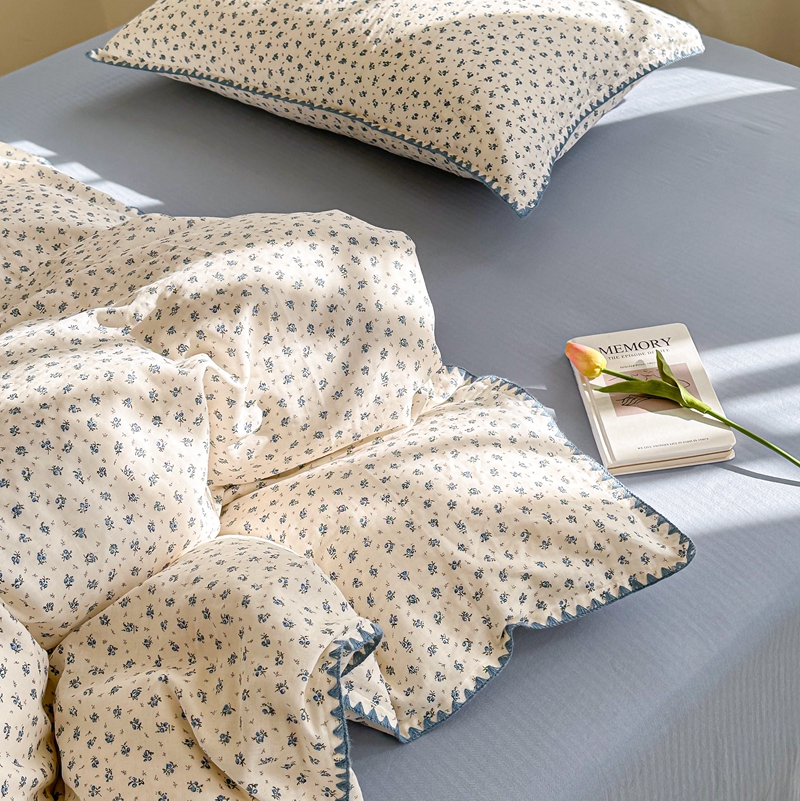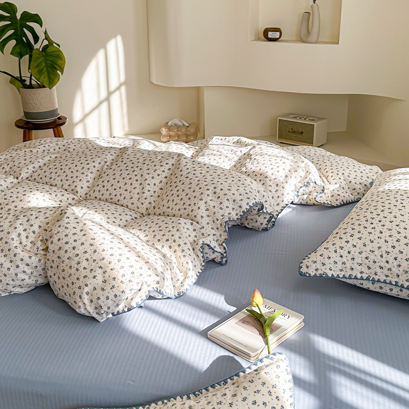 洋铭区(原狠狠爱) 2024新款全棉双层纱四件套 蓝雪小花