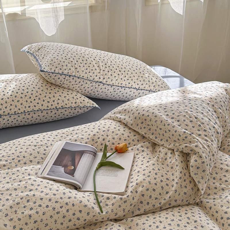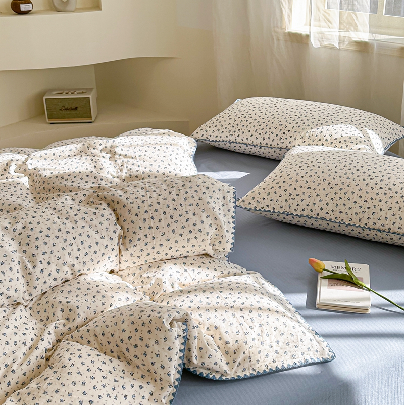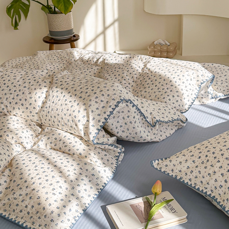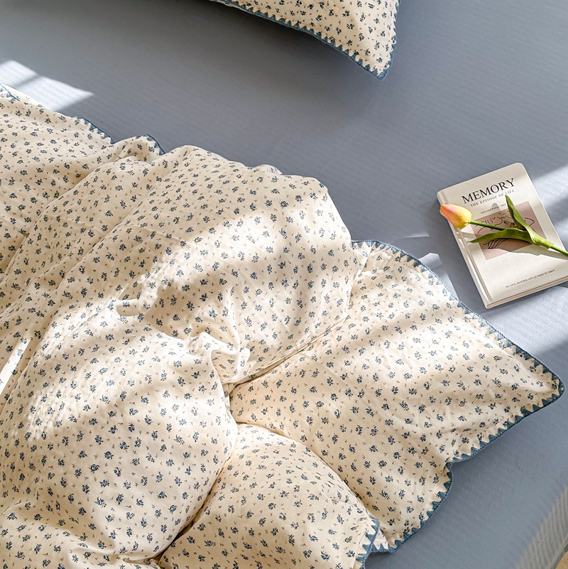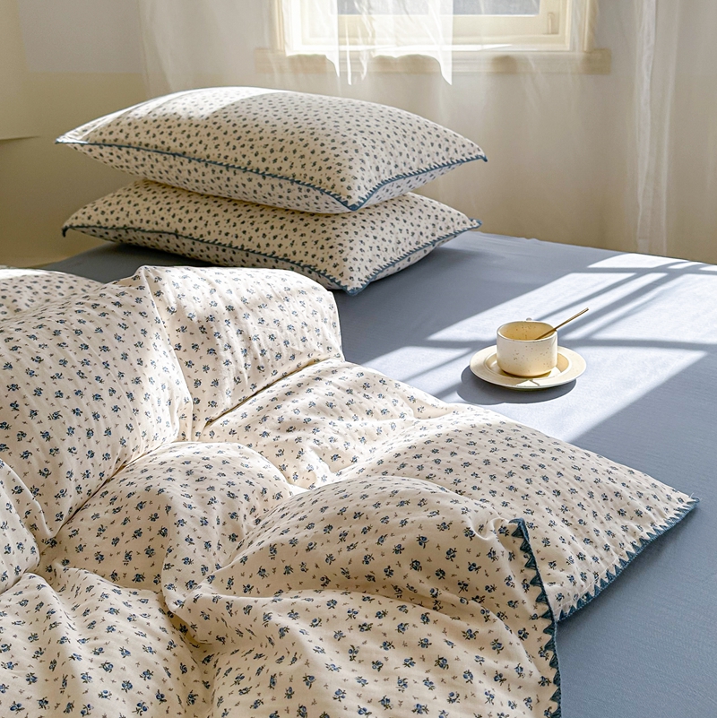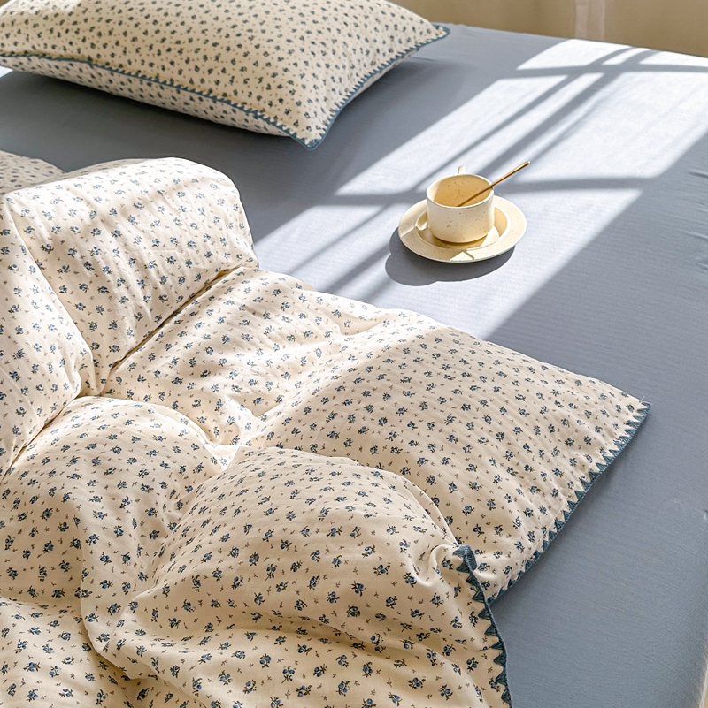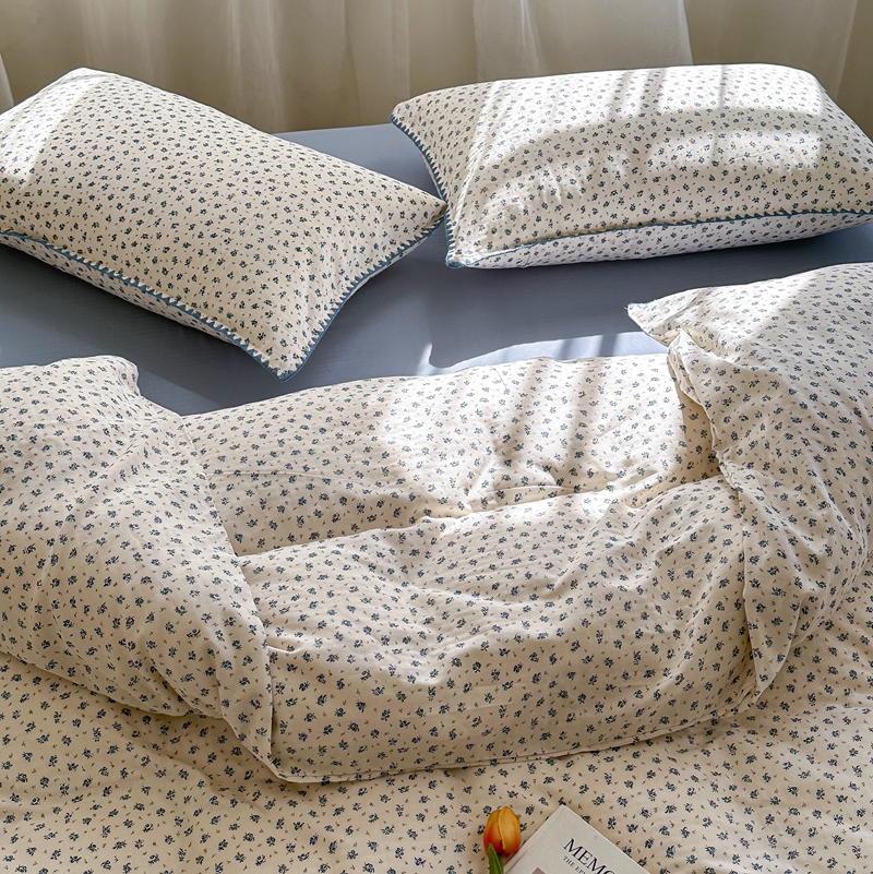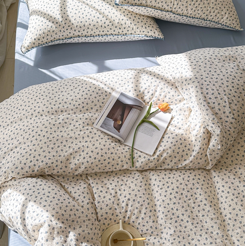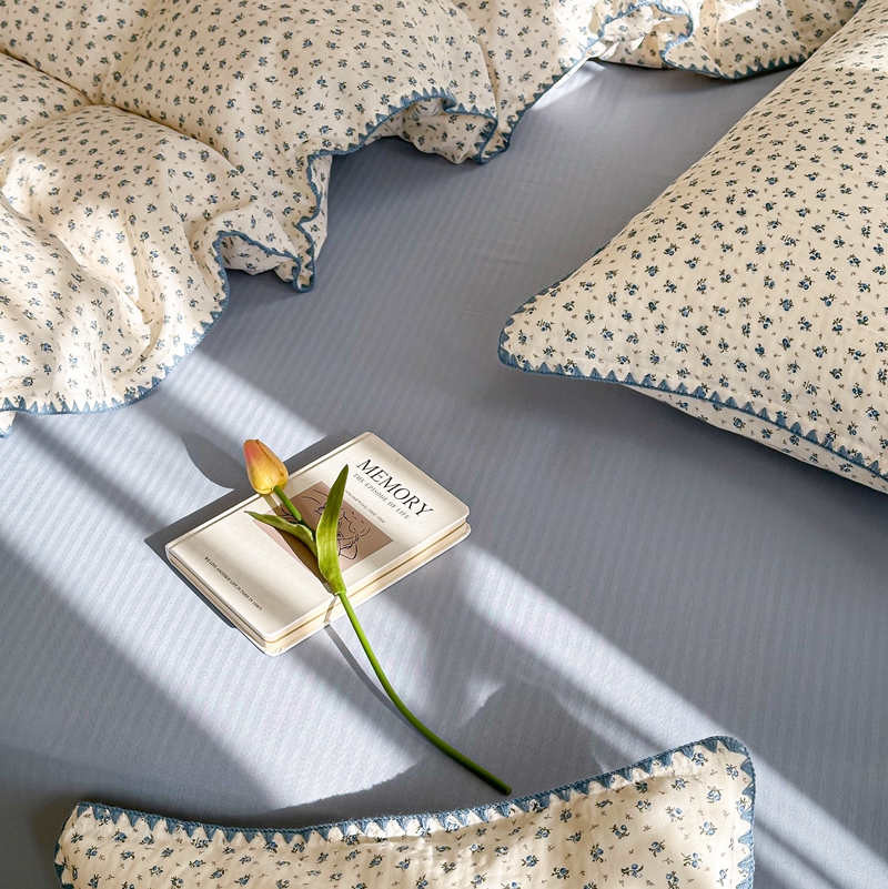 洋铭区(原狠狠爱) 2024新款全棉双层纱四件套 蓝雪小花