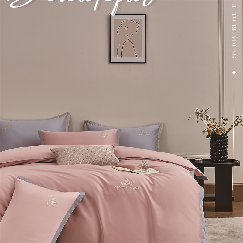 商品名称:家维 2025新款60支绣花长绒棉四件套 豆沙粉